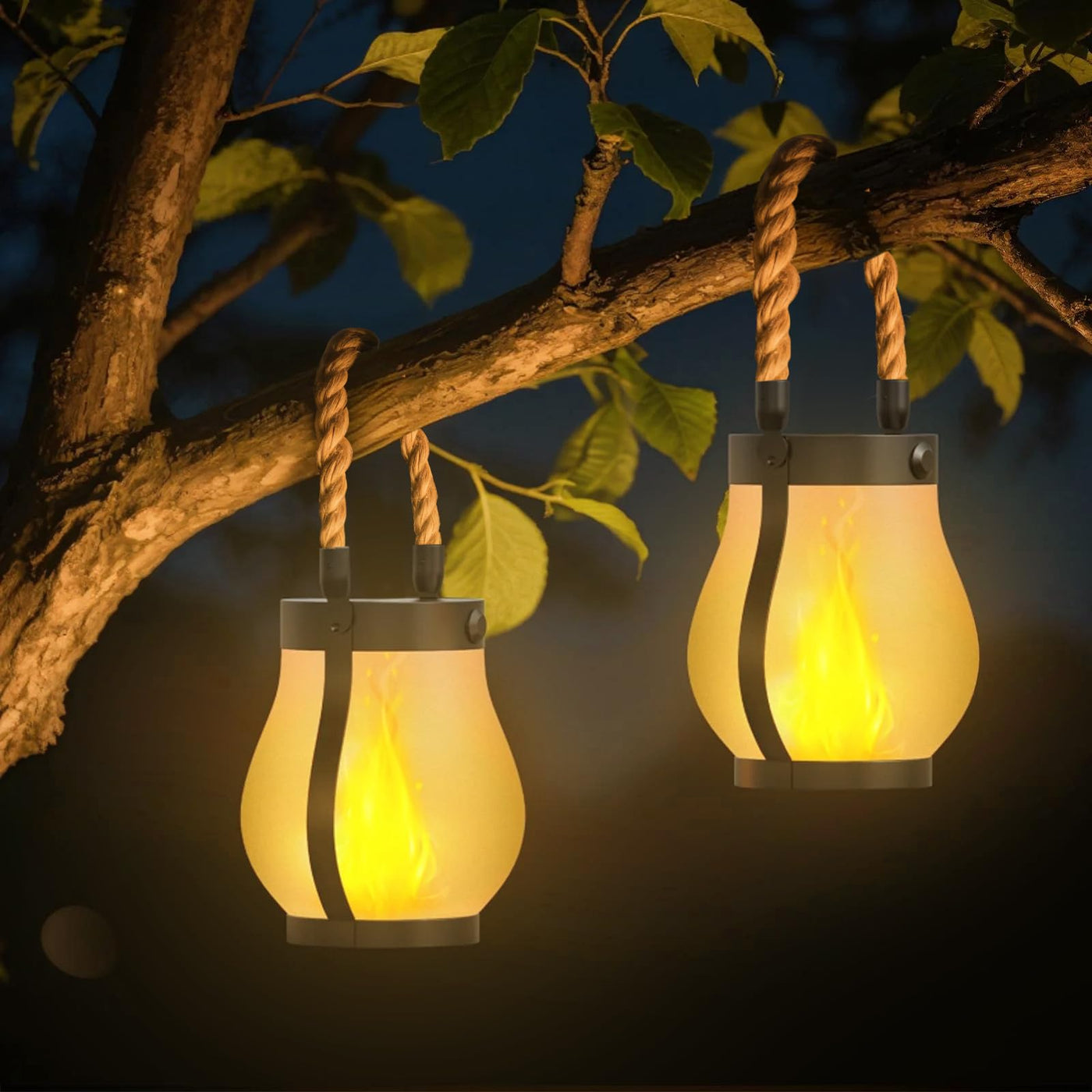 Hompavo Gen2 Solar Lanterns - Waterproof, Realistic Flickering Flame, Dual Charging, 2 Pack, Model HPSL-USAS1