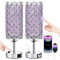 Crystal Lamps Set of 2, 3 Way Dimmable Touch Lamp with Crystal Shade, Bedside Nightstand Lamps for Living Room Bedroom Home Office(Purple)