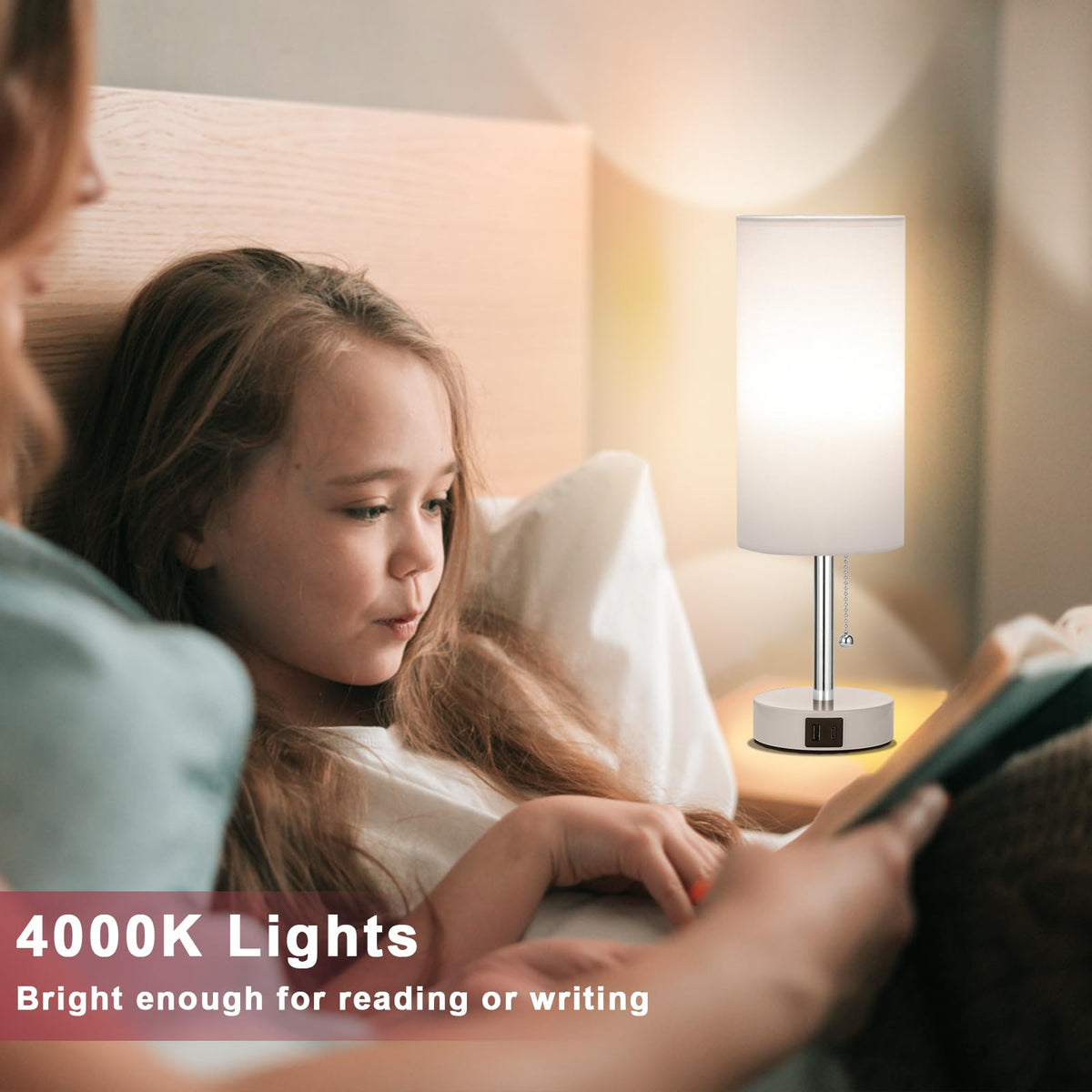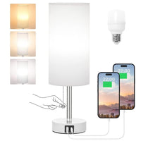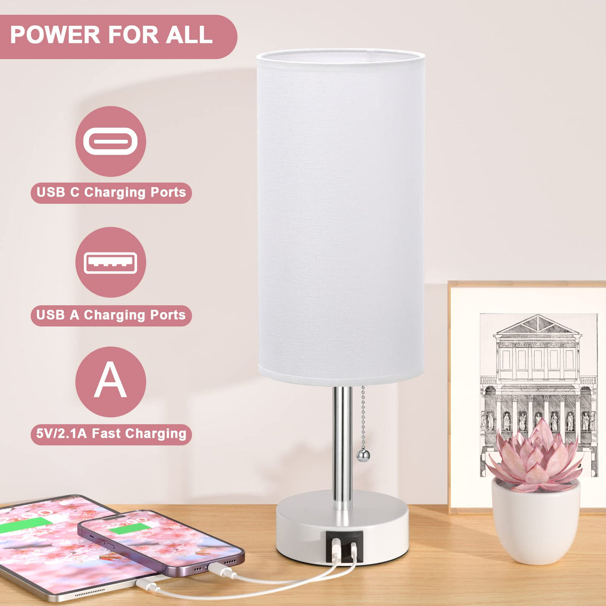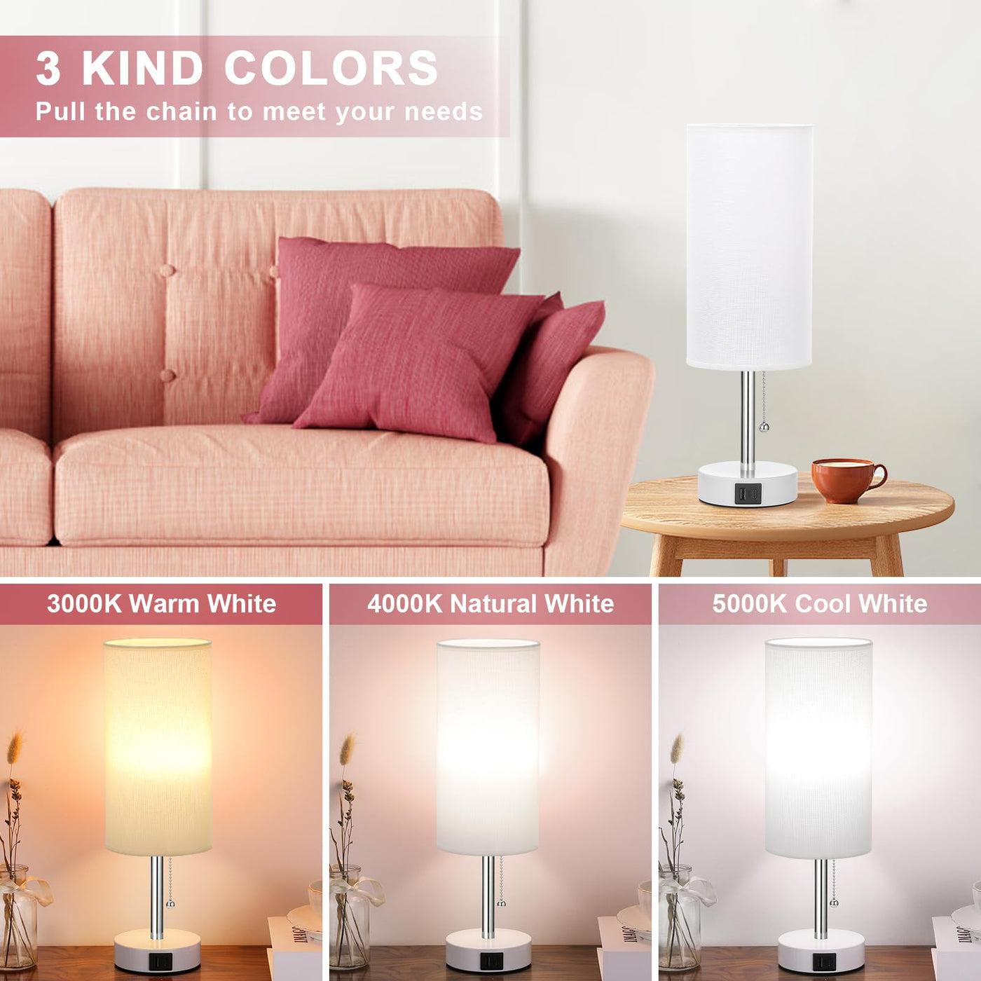 Hong-In Nightstand Lamp With 3 Color Modes - White Lamp For Bedroom With Usb-C Usb-A Charging Ports, 3000/4000/5000K Bedside Lam