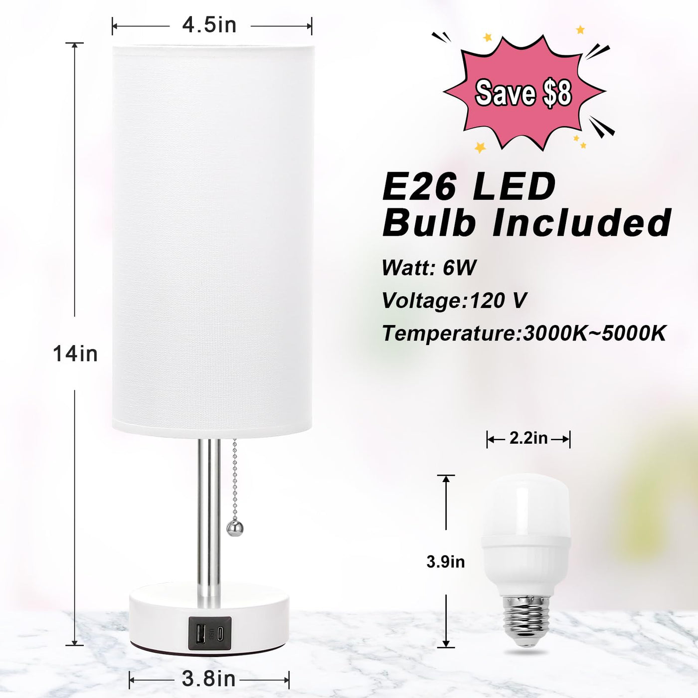 Hong-In 3 Color Modes End Table Lamp With 6W Led Bulbs, Usb C+A Charging Ports< /B > < Br > < Br > Why Choose Hong-In?< /B > < Br > < Br > We Are Committed To Save Your Time And Space And Improve Your Quality Of Life. < Br > Hong-In Small Pink Lamp Wants To Lighten Your Home And Bring Convenience, Beauty And Happiness To Your Life. We Are Sure You Will Love This Handy And Refined Led Table Lamp And Enjoy The Many Kinds Of Functions!< Br > < Br > Hong-In Upgraded Bedroom Lamps For Nightstand With Usb-A And Usb-C Is Great Choice To Lighten The Whole Room< Br >< Br > Our Table Lamps For Living Room Are Upgraded With One Usb-C Charging Port (5V/2.1A), One Usb-A Charging Port On The Elegant White Base, You Can Charge 2 Devices At Same Time, Very Suitable For Charging Your Phone, Watch, Kindle, Pad, Power Bank, Speaker, Small Humidifier And Other Electric Devices. The Usb Ports Work Whether The Nightstand Lamp With Charging Station Is On Or Off.