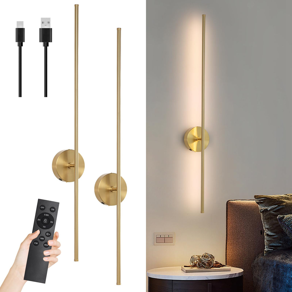 The HONGREN 40in Gold Battery Operated Wall Sconces are designed to enhance your living space with modern style and convenient functionality. This set includes two rechargeable wall sconces that provide flexible lighting solutions for any room in your home.