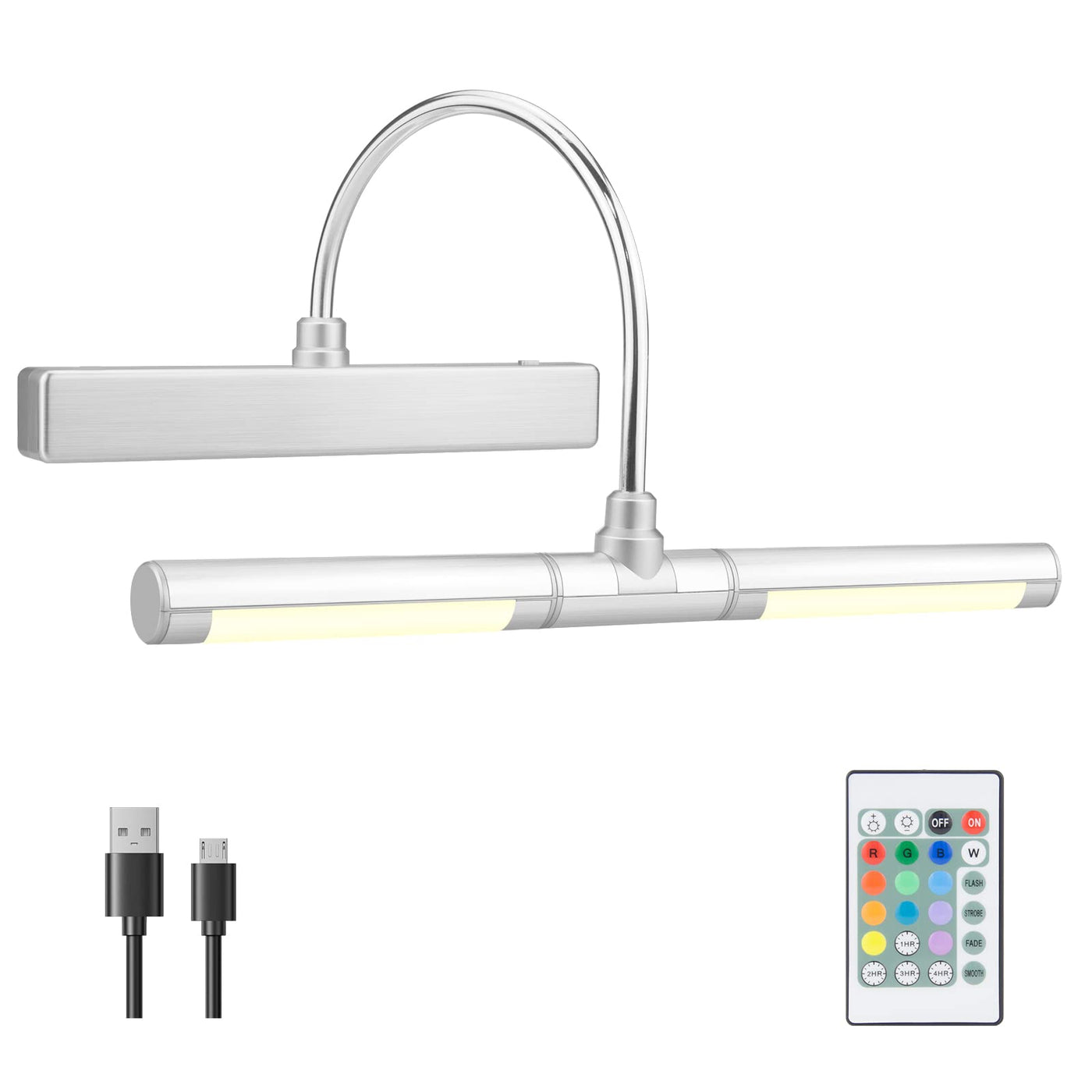 Hongut Rechargeable Wireless Picture Light With Remote, 28 Leds, 12 Color Options, Silver
