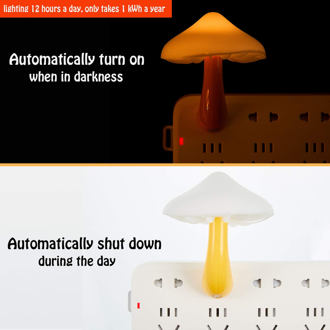 - **Automatic Switch**: Equipped with a built-in sensitive light sensor, this mushroom nightlight conveniently turns on at dusk and off at dawn, providing seamless functionality without the need for manual operation.