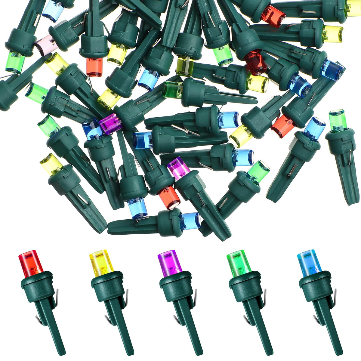 Honoson 48 Count 5 Mm Christmas Led Replacement Bulbs Bulk Wide Angle Christmas Led Light Bulbs Xmas String Replacement Festival Light Decoration (Green Base With Bright Colors Bulb)