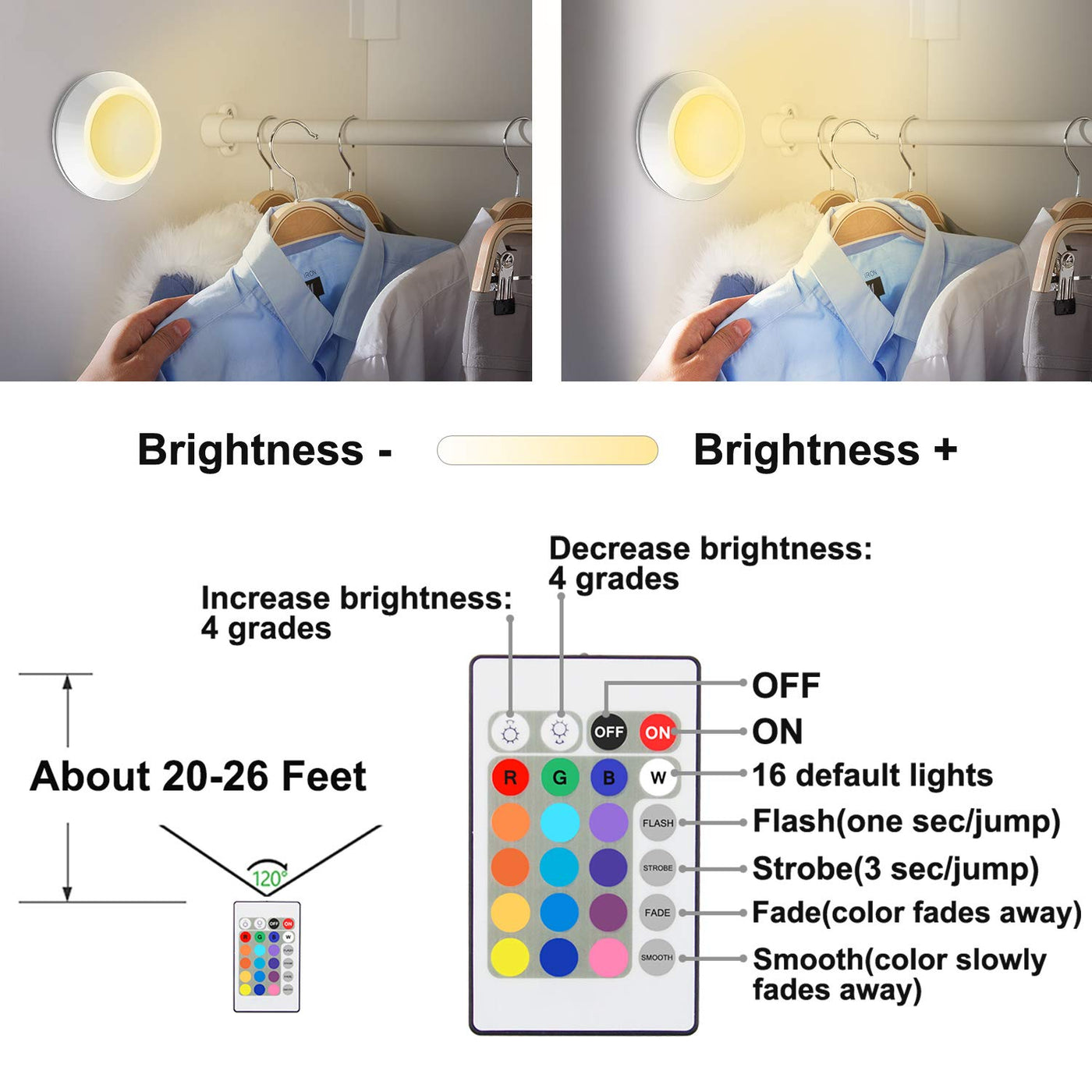 HONWELL LED Puck Lights with Remote, Battery Operated, RGB Color Changing, 3.15 inch, White, Model 8542000756