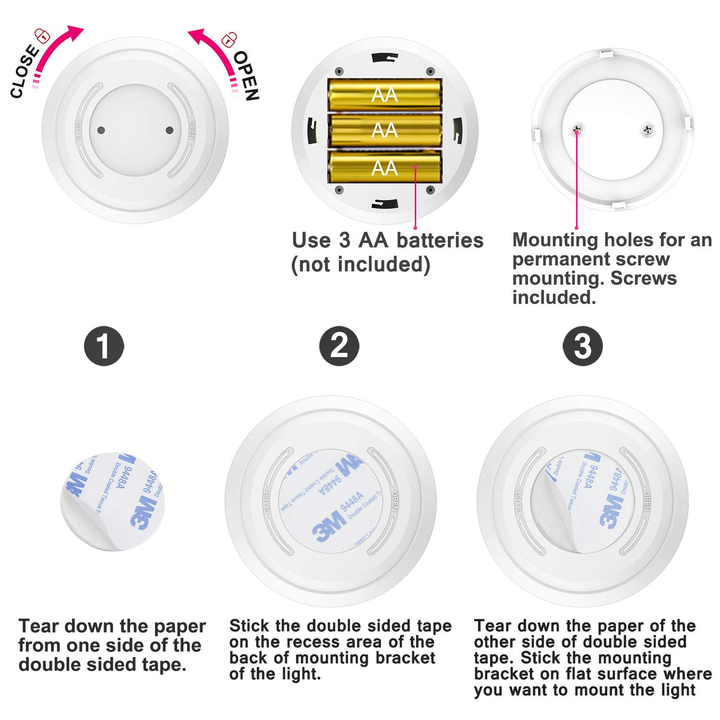 Featuring 65 lumens of brightness and a warm white light at 3000K, this puck light is powered by 3 AA batteries (not included), ensuring you have a reliable light source wherever needed. With an impressive battery run time of 80 hours, the HONWELL LED Closet Light is perfect for long-term use. Its compact size of 3.15 inches allows for easy placement in various locations without taking up much space. The light can be easily installed using the included double-sided tape or screws, making it a hassle-free addition to your home.