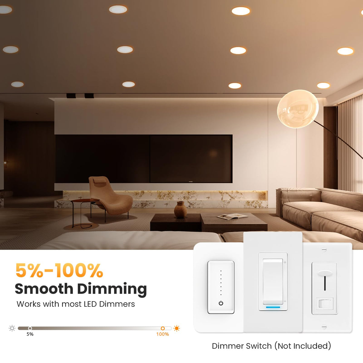 Honzin Led Recessed Lighting Is A Light That Can Be Used As Both A Downlight And Nightlight. The Downlight Has 5 Color Temperature, Which Are 2700K, 3000K, 3500K, 4000K, 5000K. They Can Be Seamlessly Integrated Into Your Bedroom, Living Room, Kitchen, Bathroom, Workplace And Other Rooms. At The Same Time, The 4 Inch Led Recessed Light Emits 2000K Amber In Nightlight Mode, And The Lighting Is Very Soft, Adding To The Atmosphere. It Can Also Provide Glare-Free Lighting When You Wake Up At Night, Which Is Very Convenient. With Ic Grade, Etl And Fcc Certification, This Slotless Led Embedded Luminaire Is Very Reliable. Finally, We Offer A 5-Year Warranty, If You Encounter Any Problems On The Product, You Can Contact Us Directly, Our Service Team Is Online 24/7, We Will Provide You With A Satisfactory Solution.