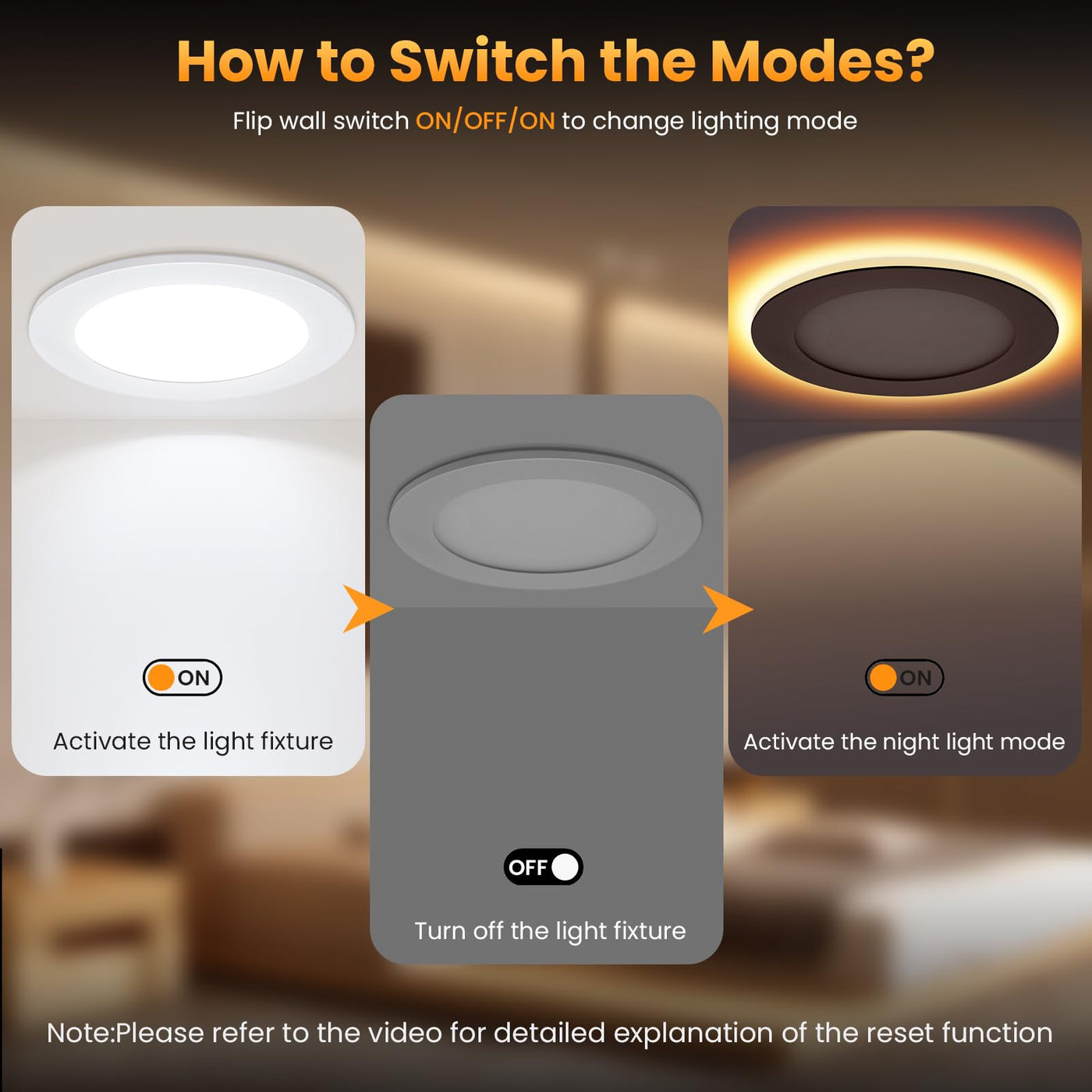 Q: How does the synchronization reset function work?A: The synchronization reset function allows multiple HONZIN recessed lights to be controlled by a single switch in different modes. To synchronize, turn off the light for over 5 seconds and then turn it back on. This will ensure all lights are set to the same mode.