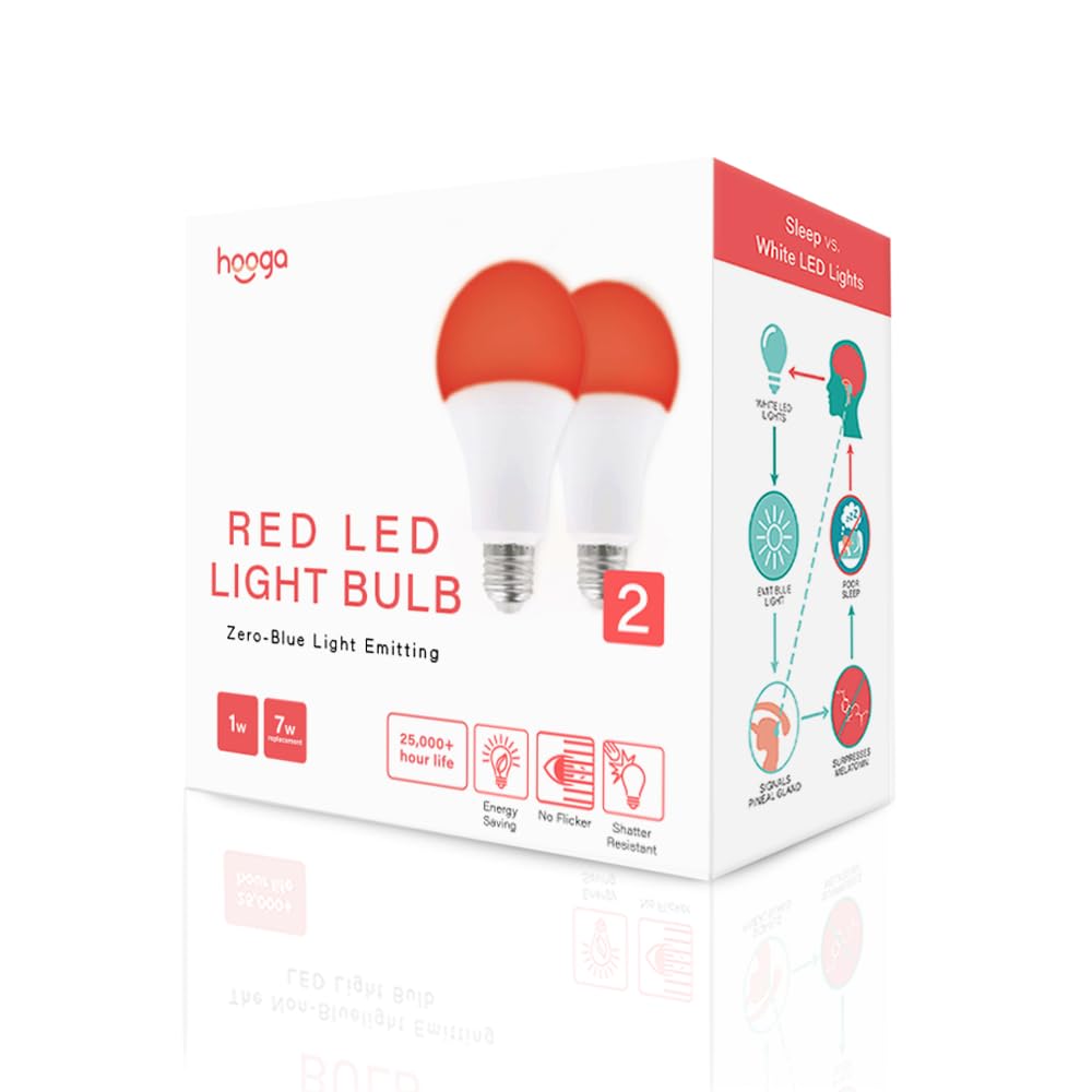 Hooga Sleep Light Bulb, Blue Light Blocking Red Night Light. 625Nm Red Bulb For Healthy Sleep. Baby Nursery Light. 1W Led, 7W Re