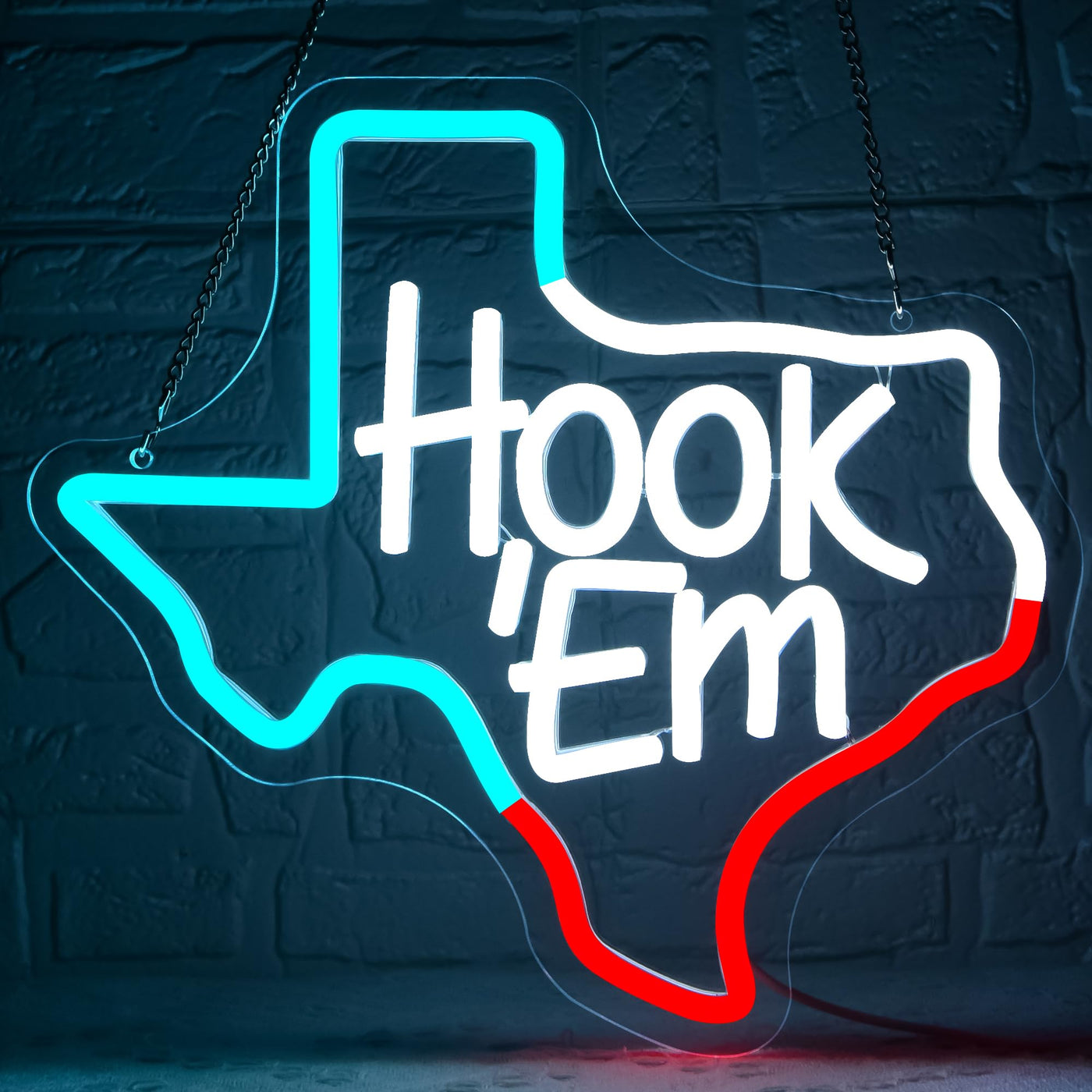 Hook Em Neon Sign for Wall Decor Texas Neon Light