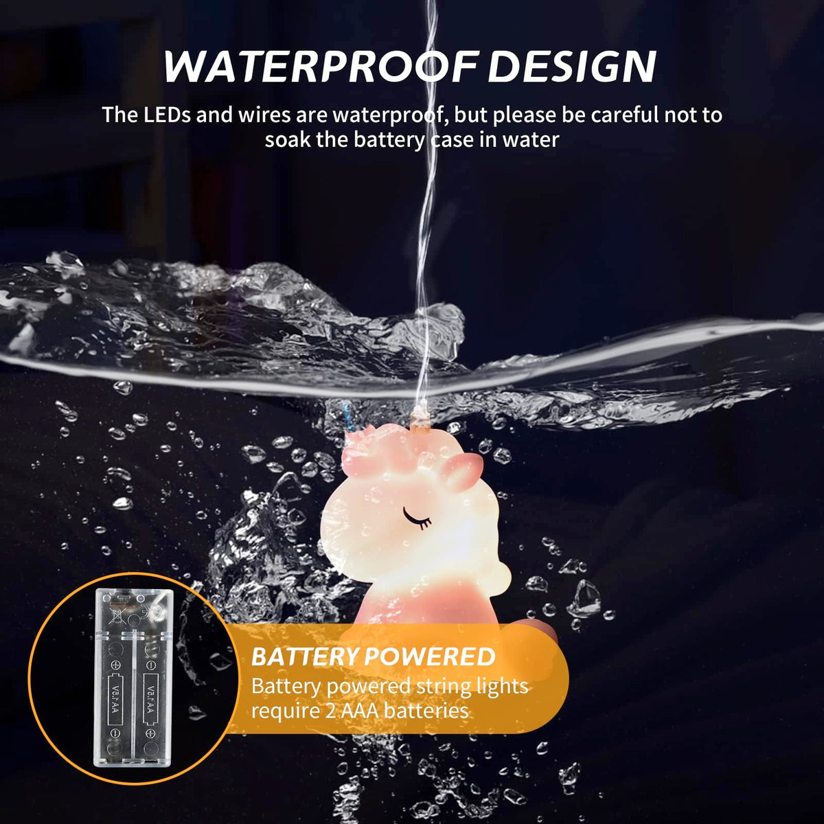 Q: What is the power consumption of the unicorn string lights?A: The unicorn string lights feature low power consumption, which helps to save energy and reduce replacement costs for batteries.