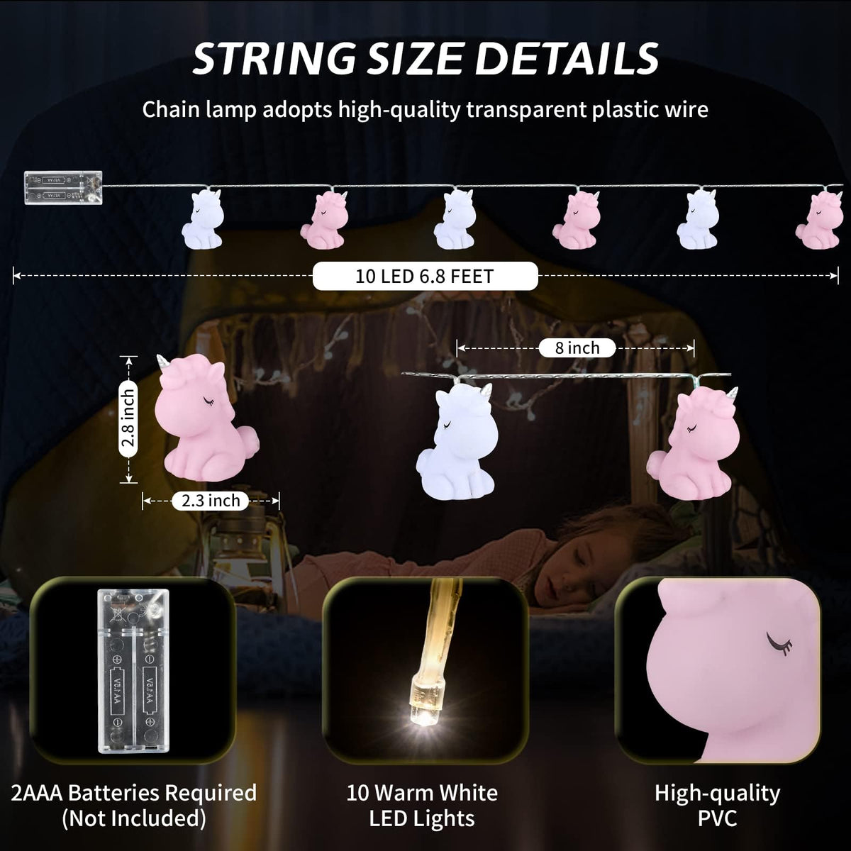Hoolight Unicorn String Lights - 10 LED Fairy Lights, Battery Operated, 6.8ft for Bedroom, Party, Wedding, Valentines Day, Christmas