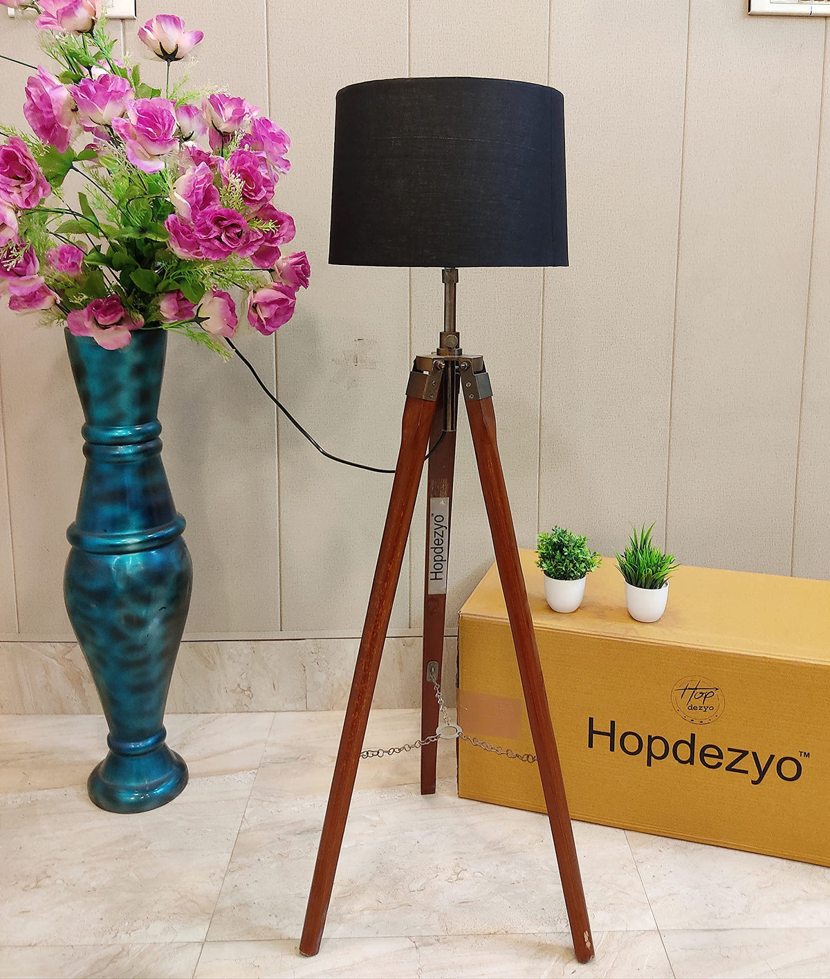 DescriptionHopdezyo foldable and adjustable tripod floor lamp is an excellent choice for a long-lasting and multi-functional wooden floor lamp for your home or office.