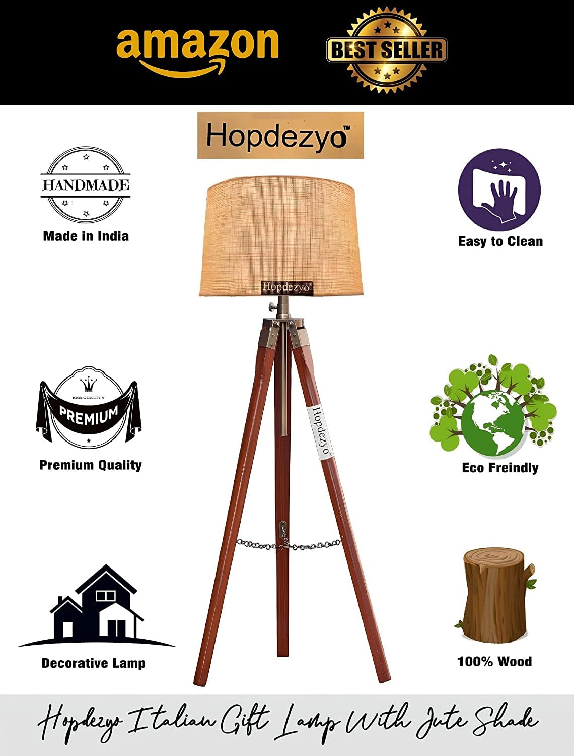 Hopdezyo E27 Italian Crafter Home Decor Tripod Floor Lamp for Living Room Bedroom Office, Holder & Lamp, Jute Shade