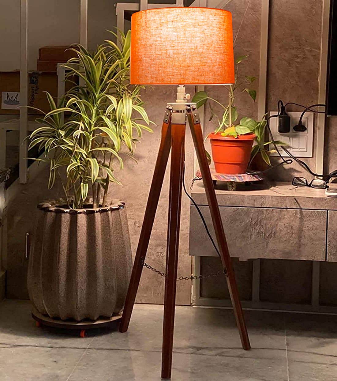 Hopdezyo E27 LED Italian Crafter Home Decor Floor Lamp for Living Room Bedroom Office, Holder & Lamp, Orange Shade Pack of 1