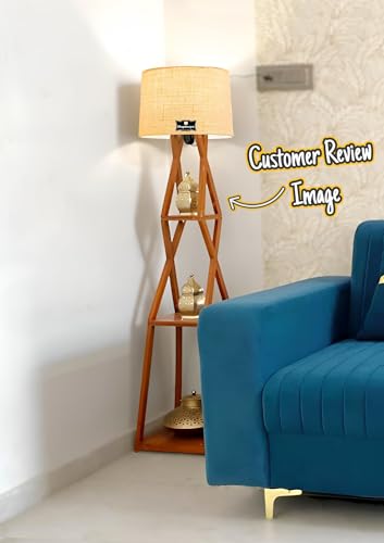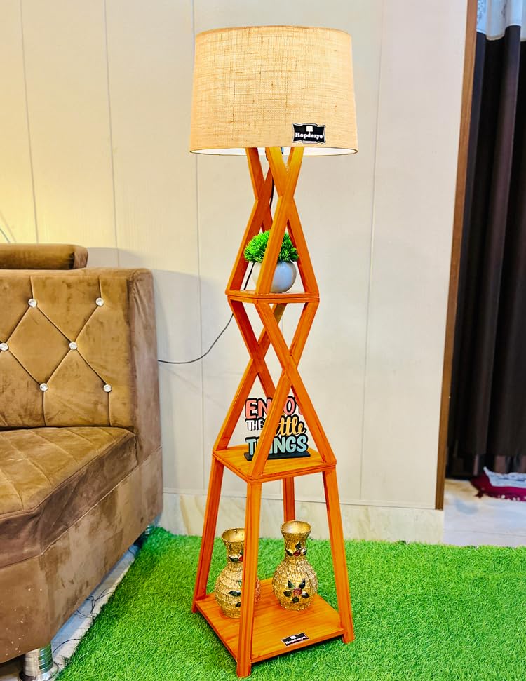 Hopdezyo Khadi Shade, Corner Design Wooden Floor Lamp for Living Room, Bedroom, Office & Home Decoration