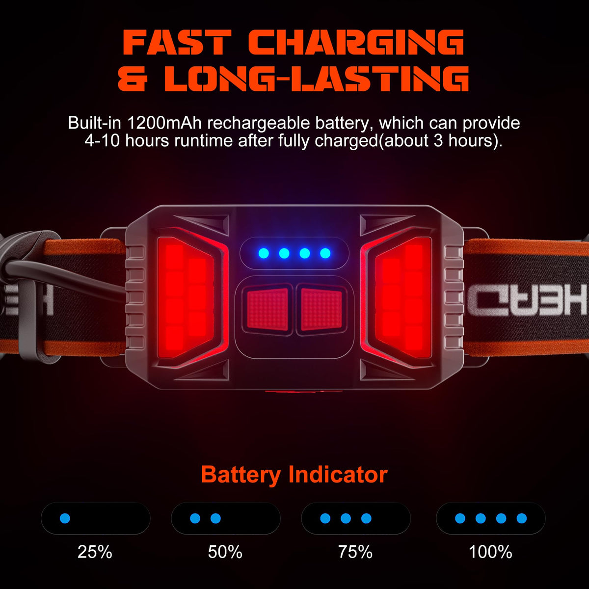 Lightweight & Comfortable: Weighing only 3.8oz, the headlamp is crafted from durable ABS and soft silicone for all-day comfort, making it easy to carry and wear during outdoor activities.
