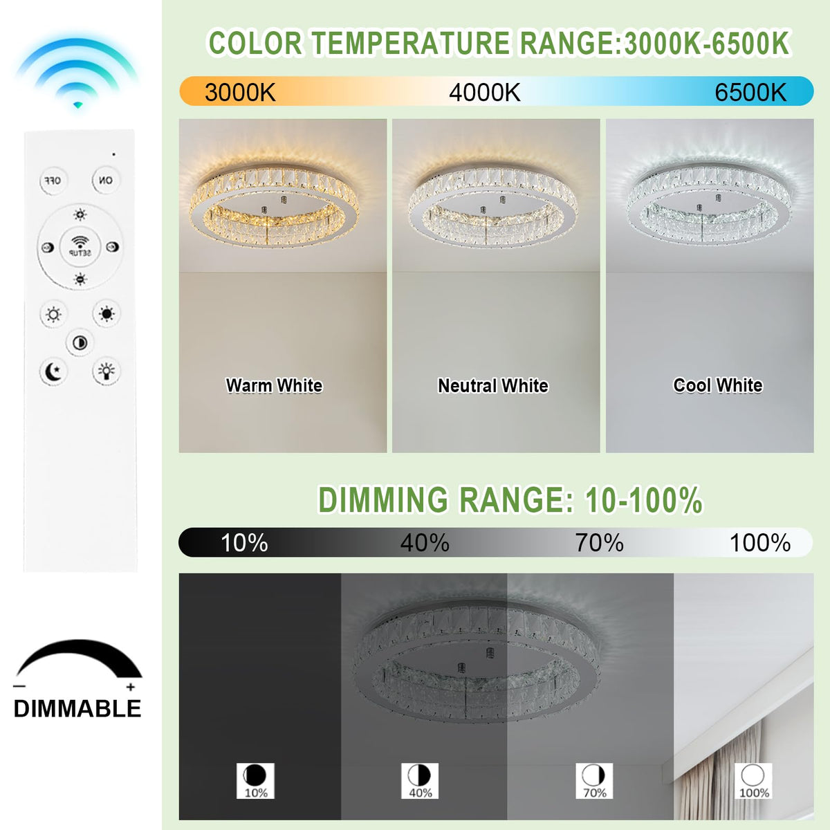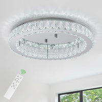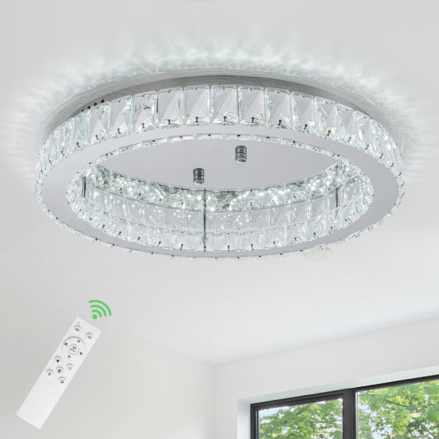 18'' Crystal Chandelier With Remote Control Led Flush Mount Ceiling Light Fixtures Modern Round Ring Chandelier Light For Living Room Bedroom Dining Room (Dimmable)