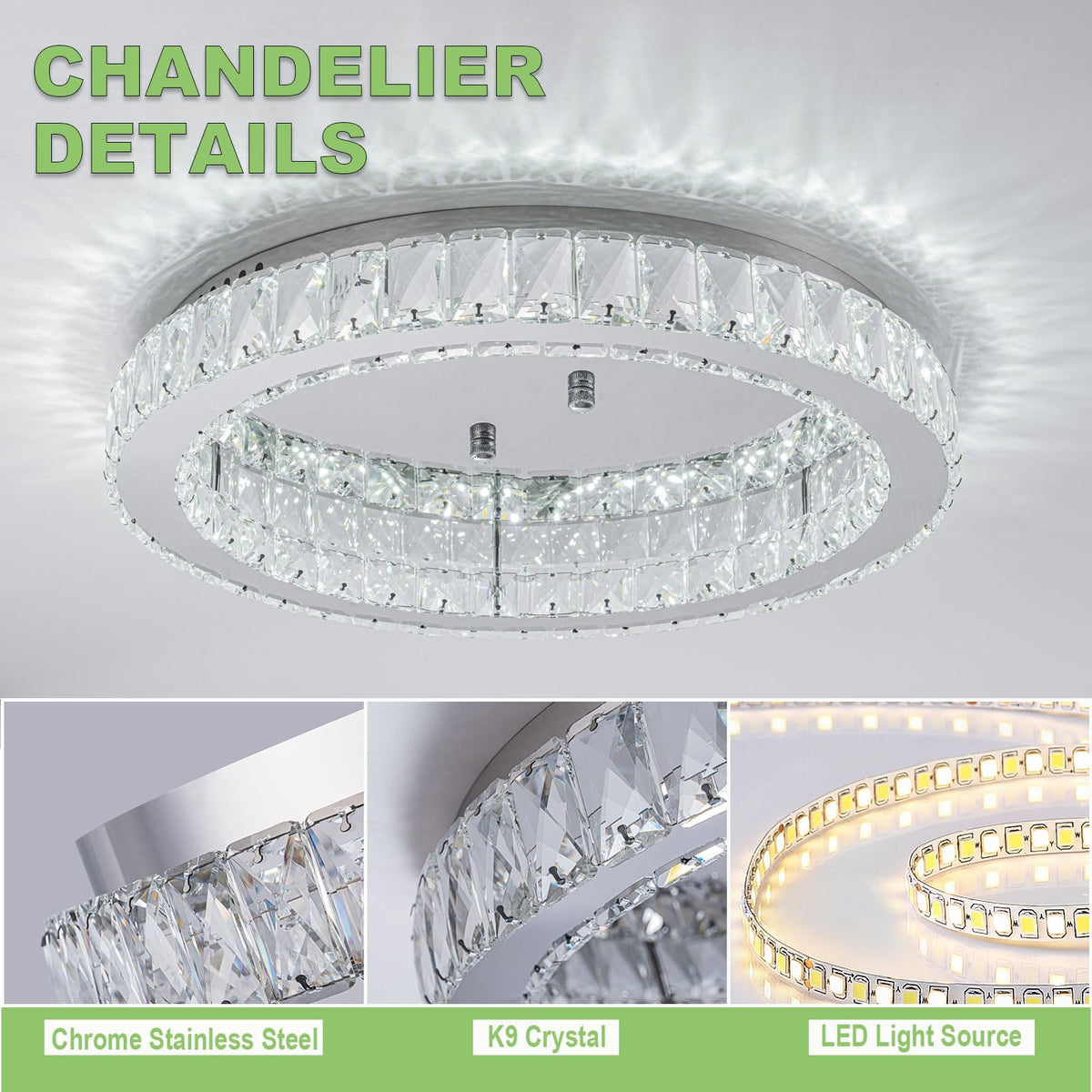 Hopggie 18'' Crystal Chandelier With Remote Control Led Flush Mount Ceiling Light Fixtures Modern Round Ring Chandelier Light Fo