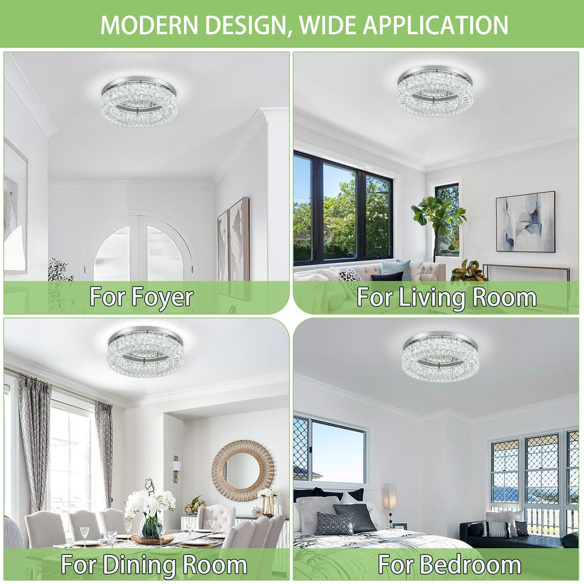 Q: Can the chandelier be used in different rooms?A: Yes, this versatile chandelier is suitable for various spaces, including living rooms, bedrooms, dining rooms, kitchens, and hallways, complementing different decor styles from modern to farmhouse.