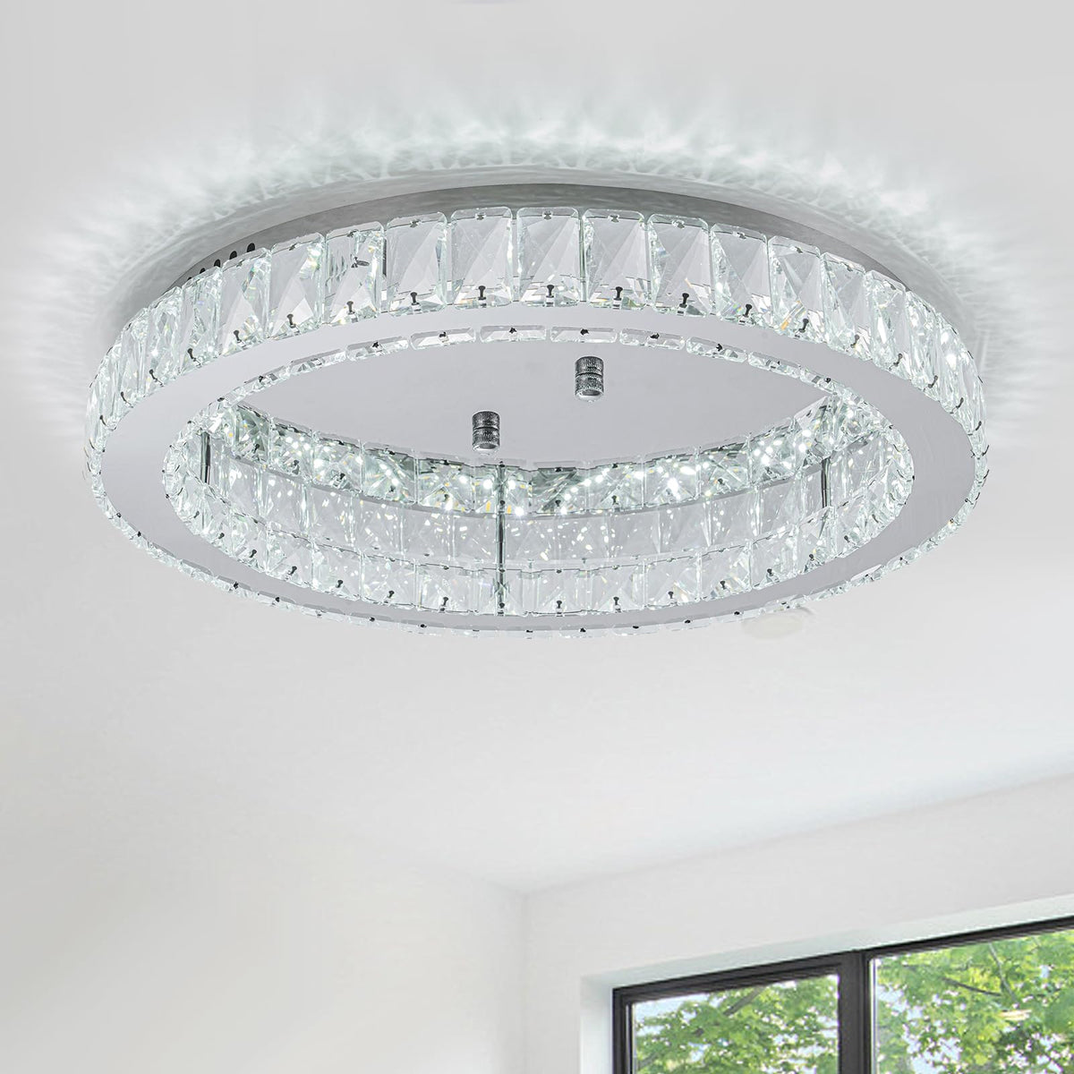 Crafted from well-made K9 crystal, this chandelier not only illuminates your home but also adds a touch of sophistication to your interior design. The flush mount design ensures it fits snugly against the ceiling, making it suitable for rooms with low ceilings. With built-in LED chips, this fixture offers energy-efficient lighting without the need for additional bulbs, providing bright illumination while reducing electricity consumption.