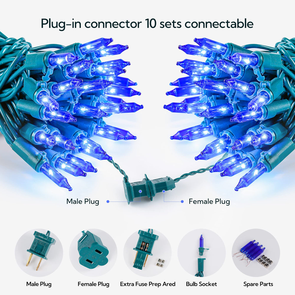 The Hopolon String Lights Feature 50 Incandescent Blue Bulbs, Strung On A Durable Green Wire That Measures A Total Of 13 Feet. The Lights Are Crafted From well-made Copper, Ensuring Excellent Conductivity And Longevity. With Easy-To-Use End-To-End Connectors, You Can Connect Multiple Strands, Achieving A Total Length Of Up To 130 Feet. These Lights Are Not Only Beautiful But Also Practical, Designed To Remain Lit Even If A Bulb Is Removed Or Breaks, Making Them A Reliable Choice For Your Holiday Decor.