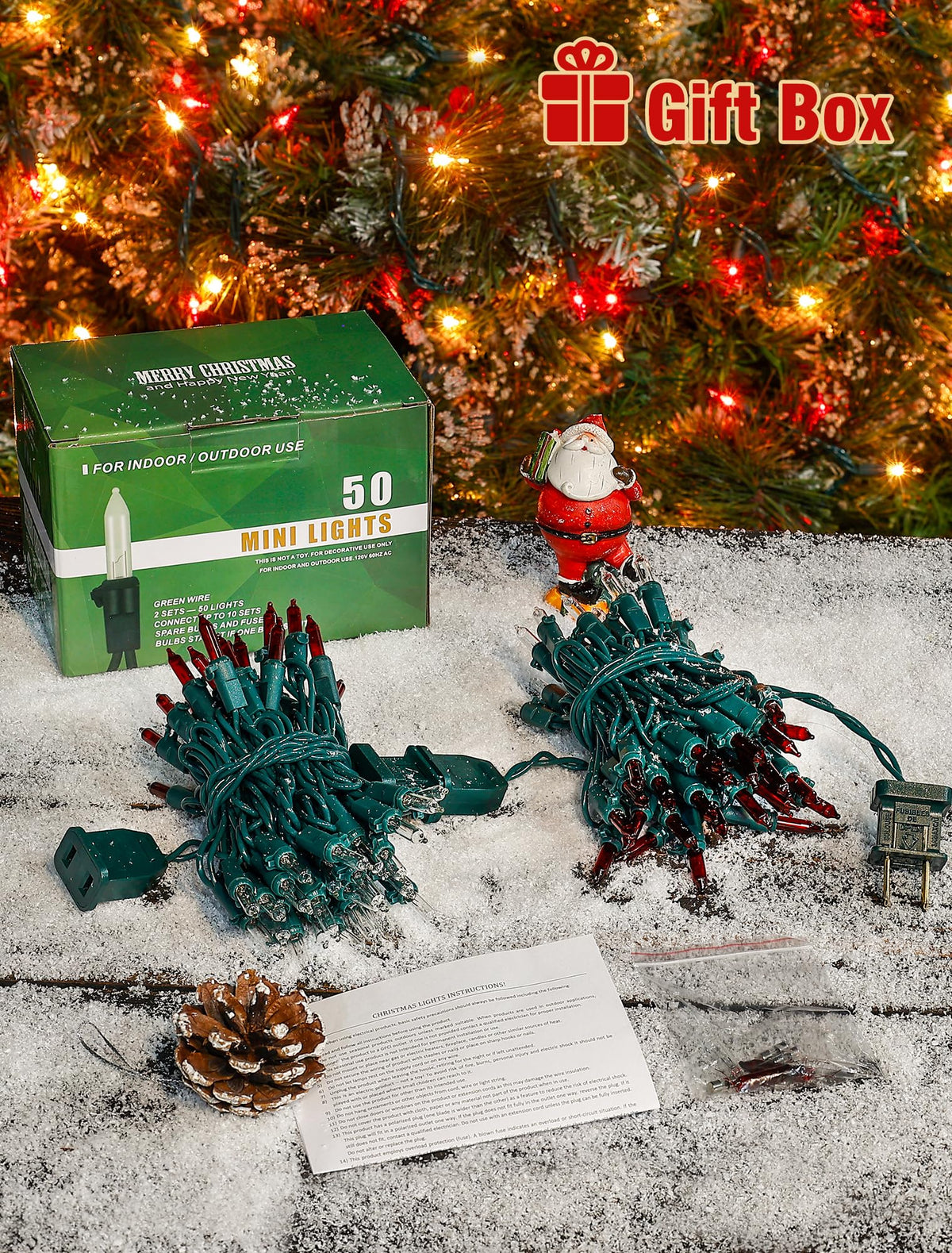 Hopolon Christmas Lights Indoor Outdoor 2 Pack 13 Ft 50 Count Incandescent Mini String Light Green Wire Christmas Tree Lights Waterproof For Holiday Wedding ValentineS Day Decor Red And Clear