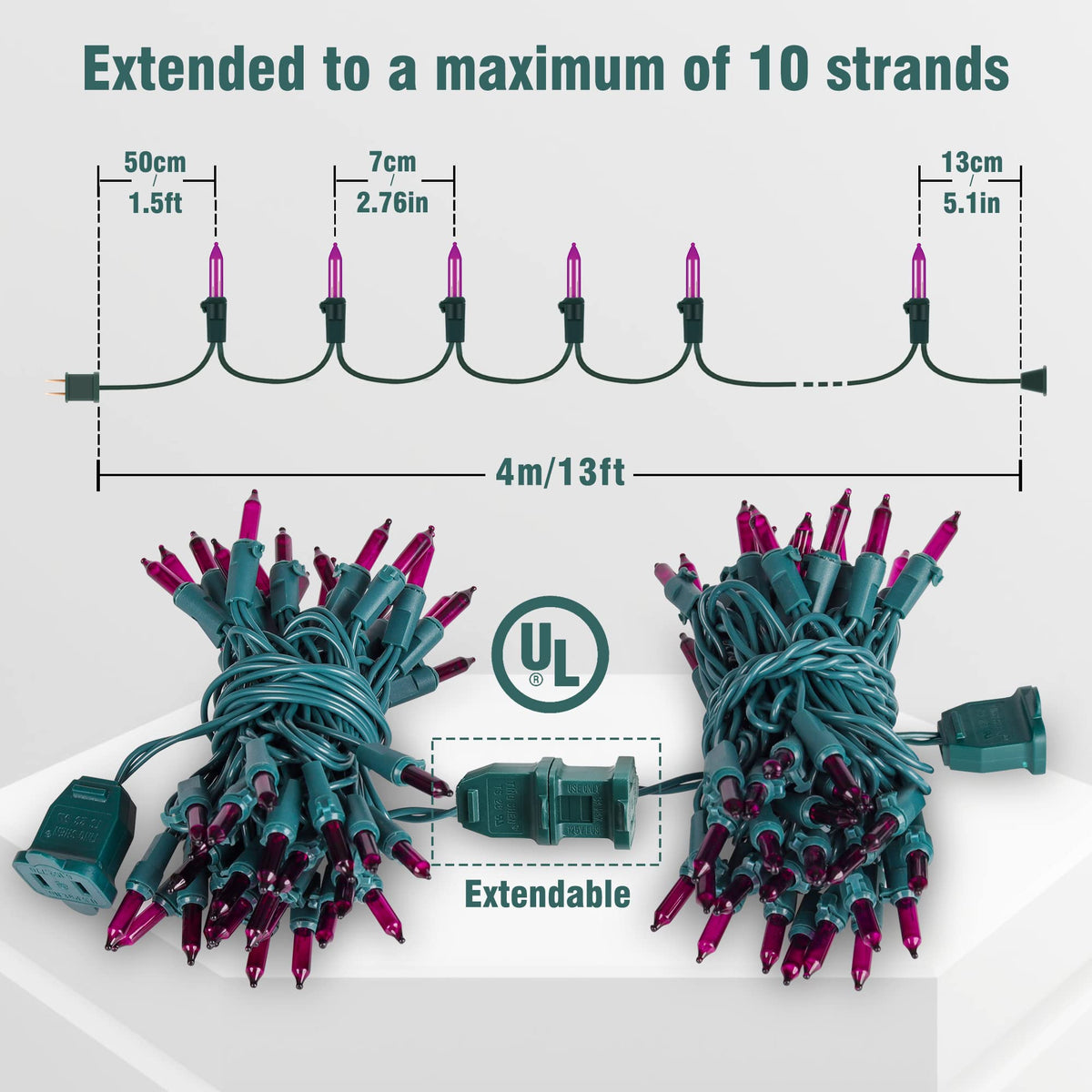 hopolon Mini String Lights, 50 Count, 2 Pack, 13FT Connectable, Purple, Green Wire, Model QX-50-1-M, Indoor/Outdoor Decor