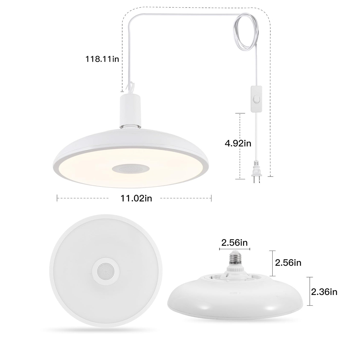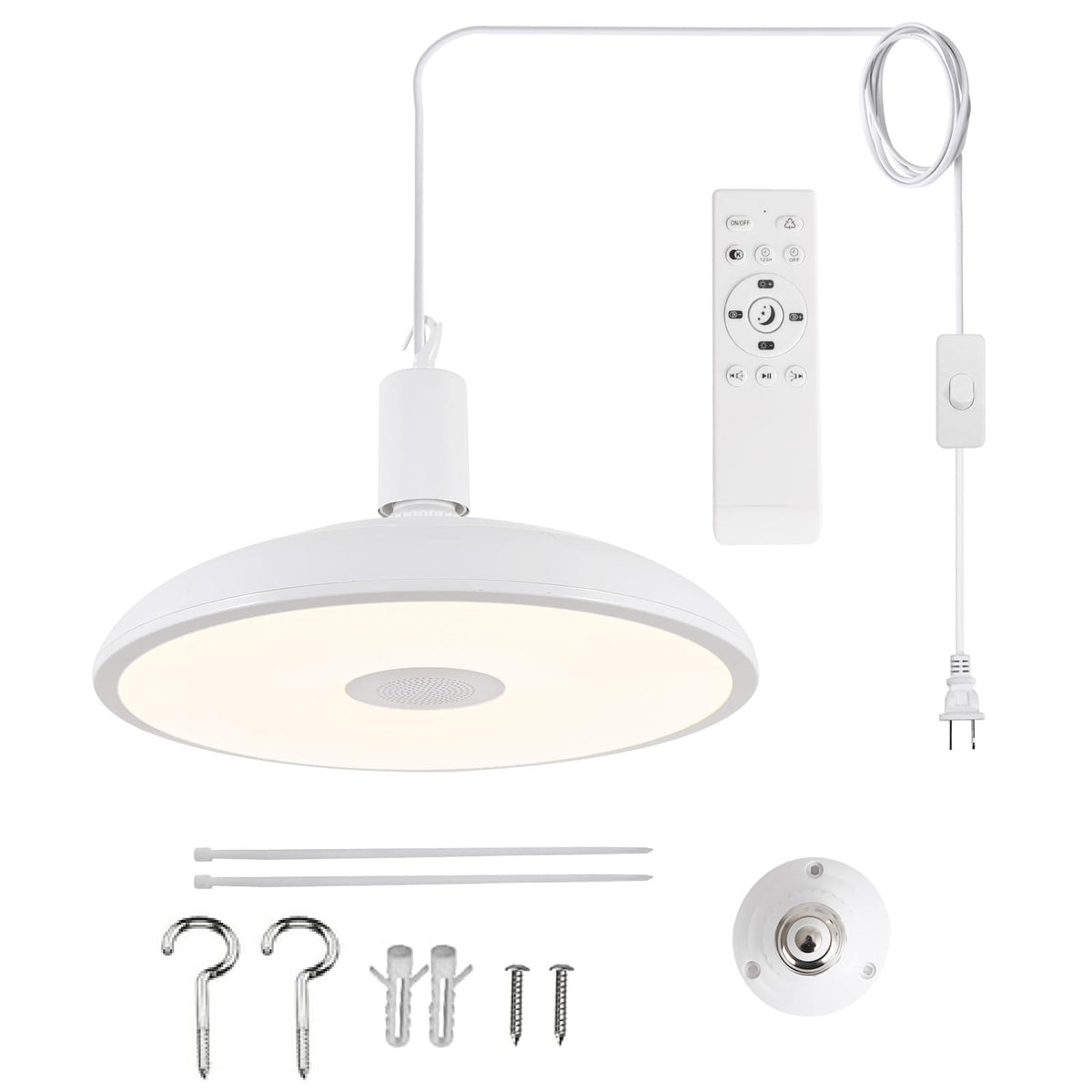 HOREVO Pendant Light with Bluetooth Speaker, 18W Color Changing LED, Remote Control, 12in Upgrade-White, Model H0017