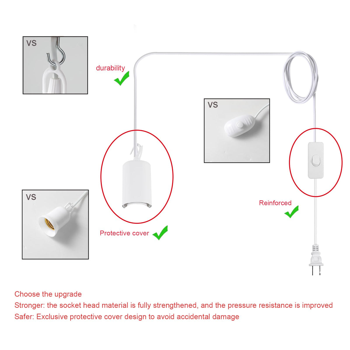 Q: What materials are used in the HOREVO pendant light?A: The HOREVO Upgrade Plug in Pendant Light is made primarily from plastic, ensuring a lightweight and modern design.