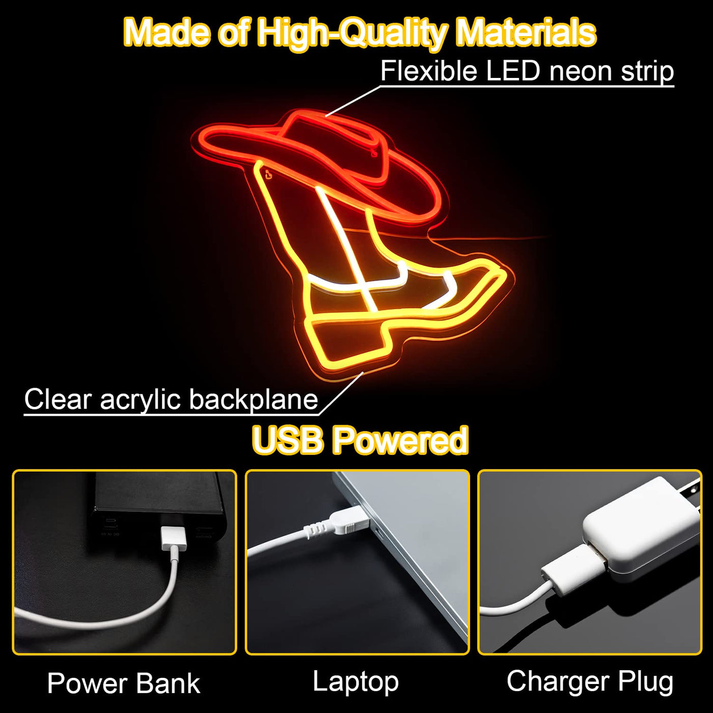 Horseneon Cowboy Neon Signs, Cowboy Hat Neon Lights Signs, Western Cowboy Neon Light, Cowboy Boot Led Sign With Usb Powered For Cowboy Farm, Wall Hanging Decor
