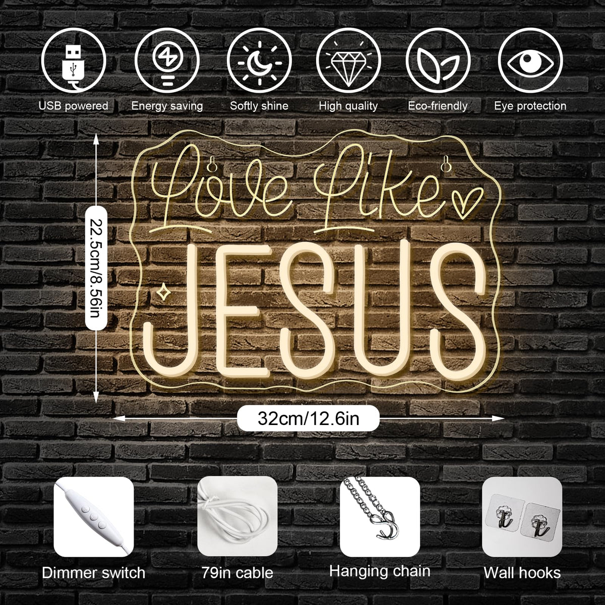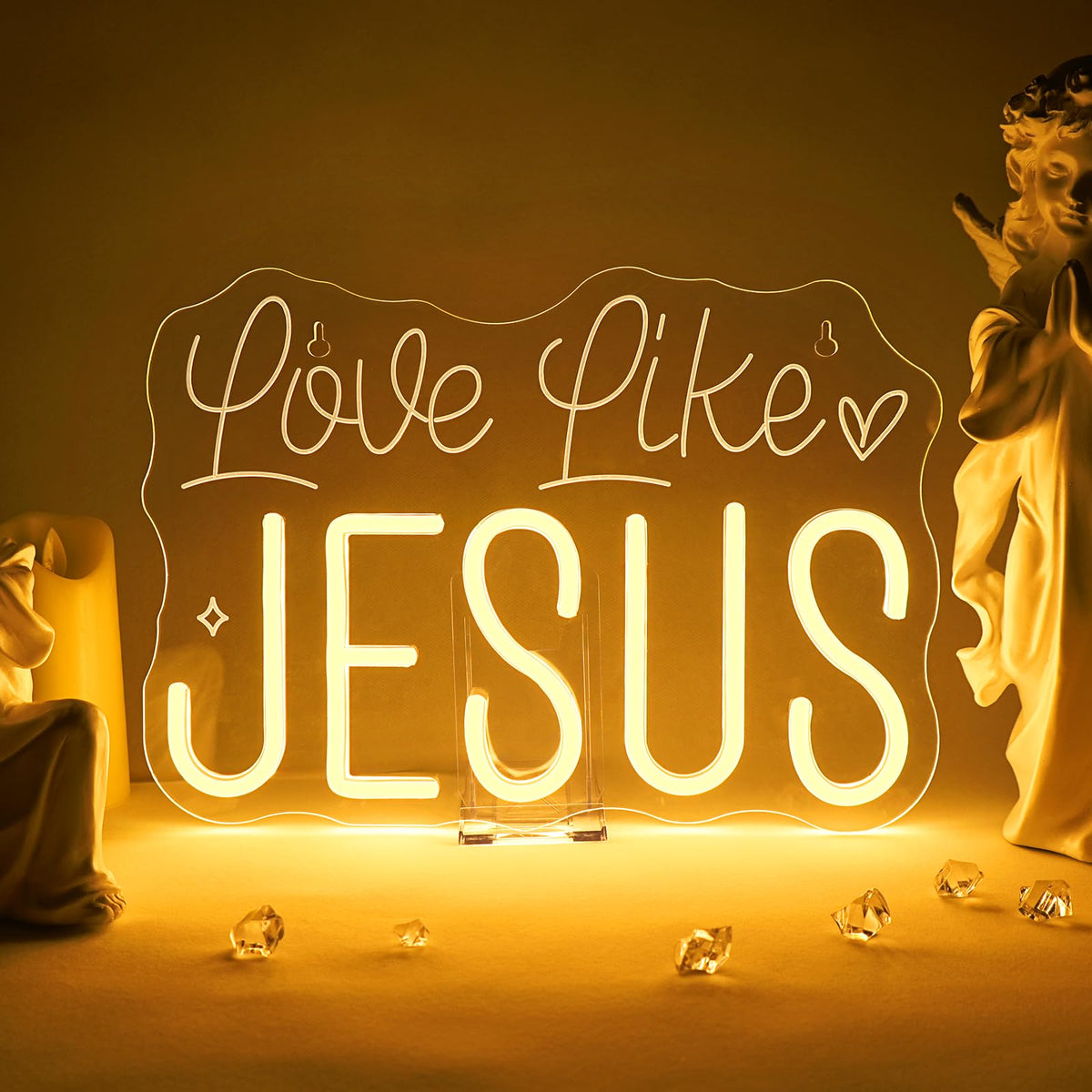 Horseneon Love Like Jesus Neon Sign - Scripture Led Wall Decor For Churches Home Altars & Christian Gifts Usb-Powered Adjustable Brightness Faith-Based Lighting