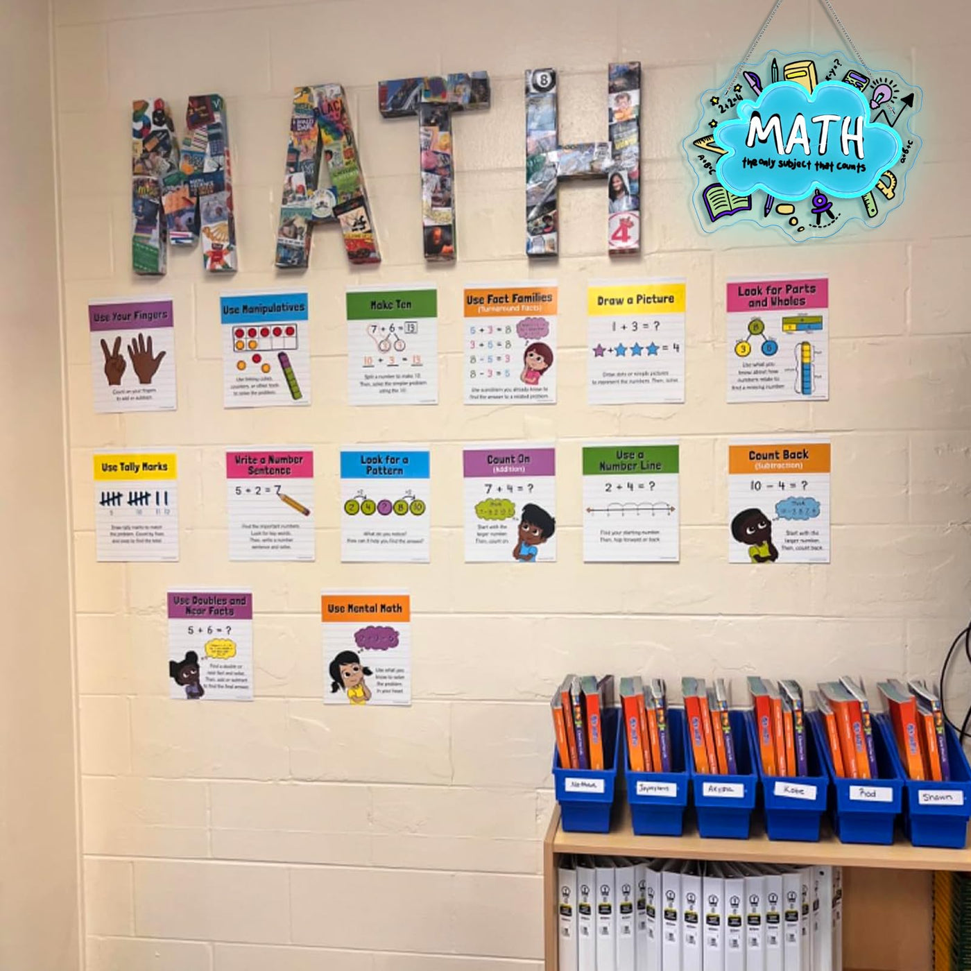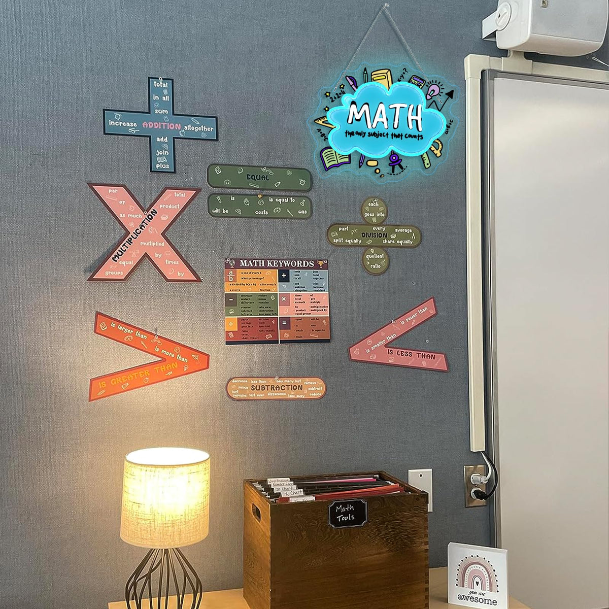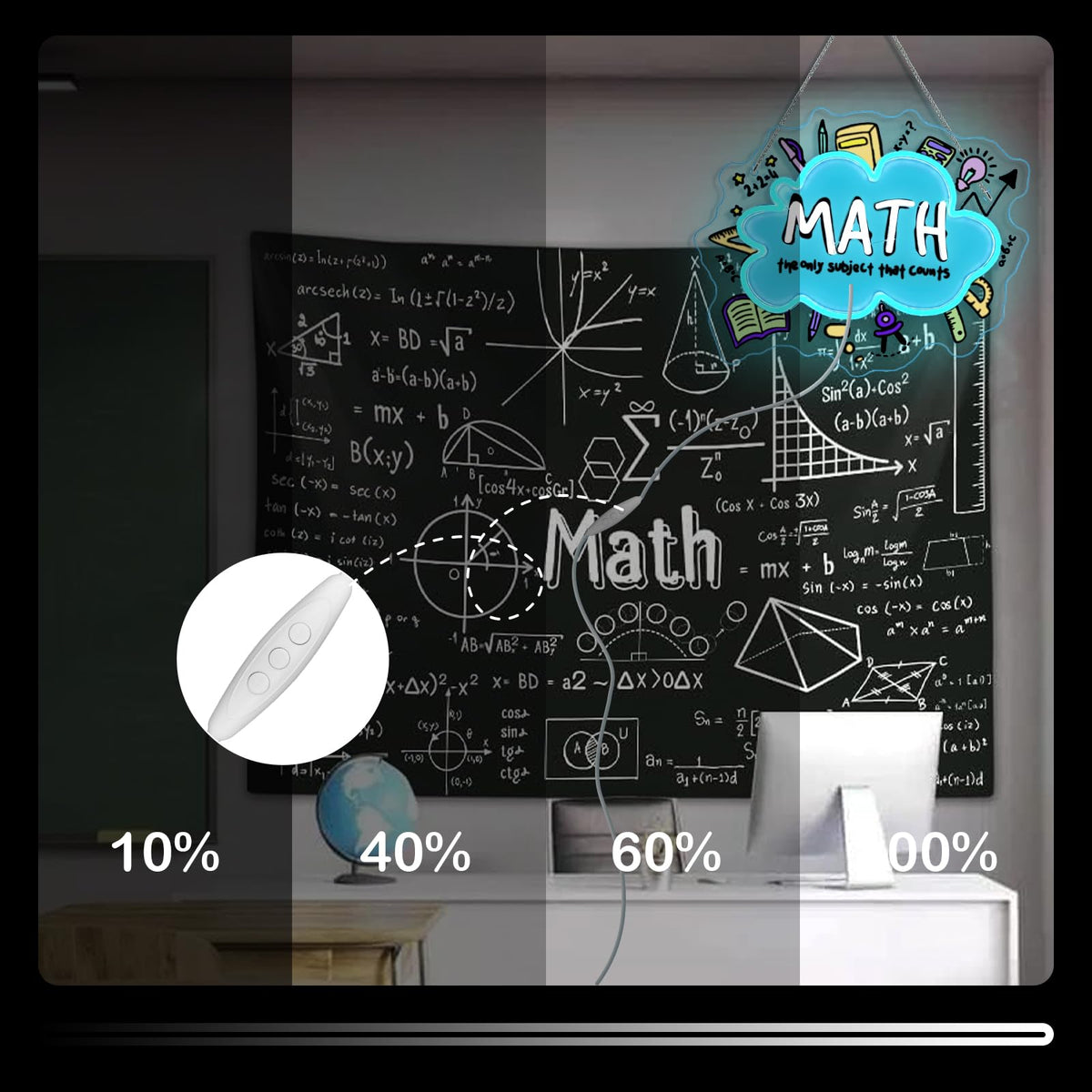 Horseneon Math Neon Sign Educational Led Wall Decor For Classrooms Study Rooms & Math Teacher Gifts Usb-Powered With Adjustable Brightness Scientific-Themed Lighting
