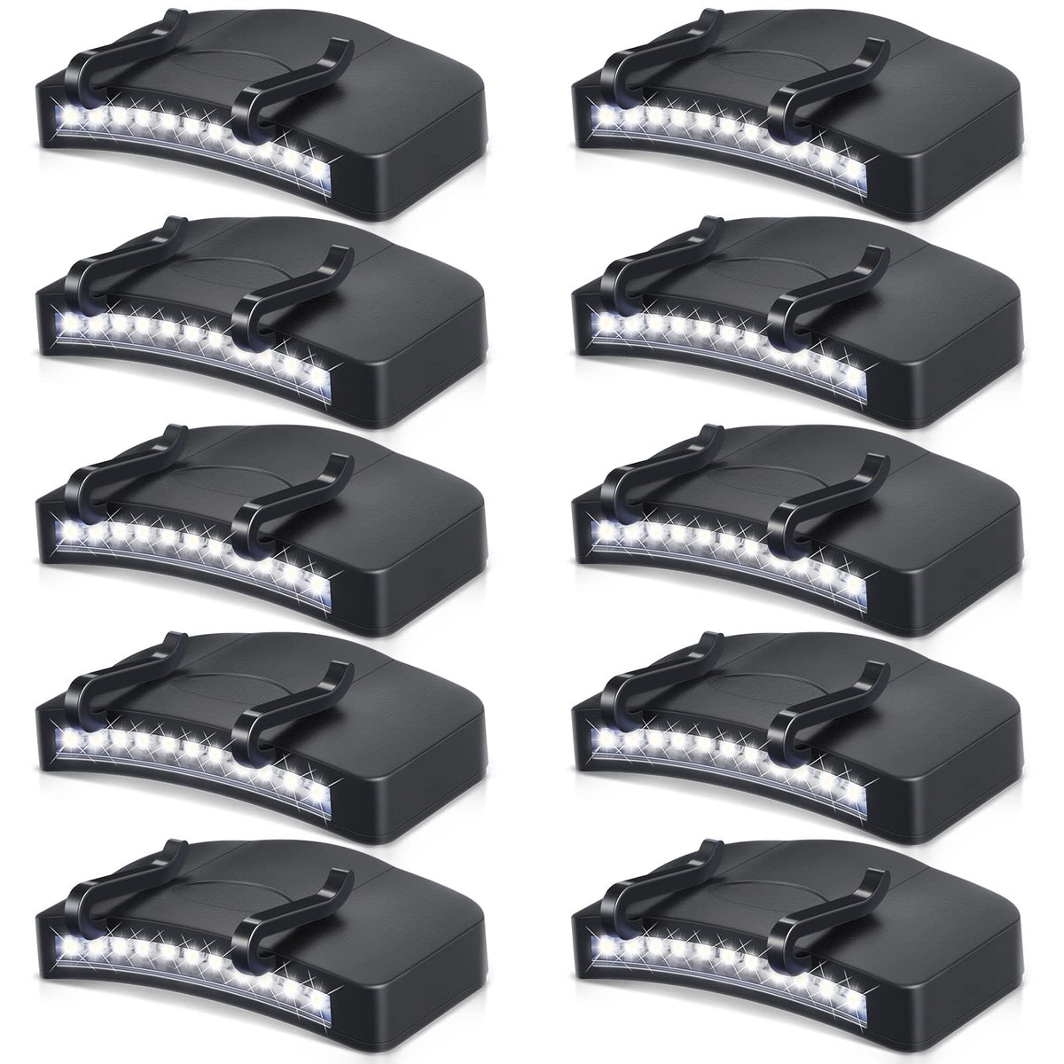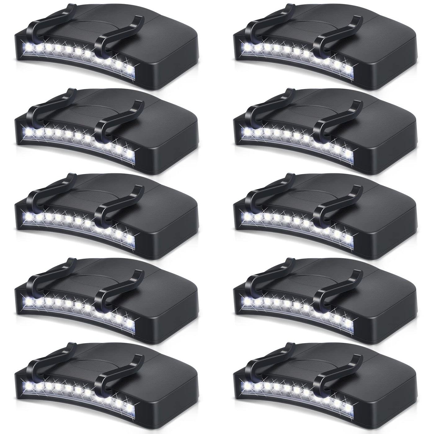 Hortsun 10 Pcs Cap Light Clip 11 Led Cap Lights Clip On Hat Battery Hat Brim Clip On Light Black Waterproof Ultra Bright Hat Fla