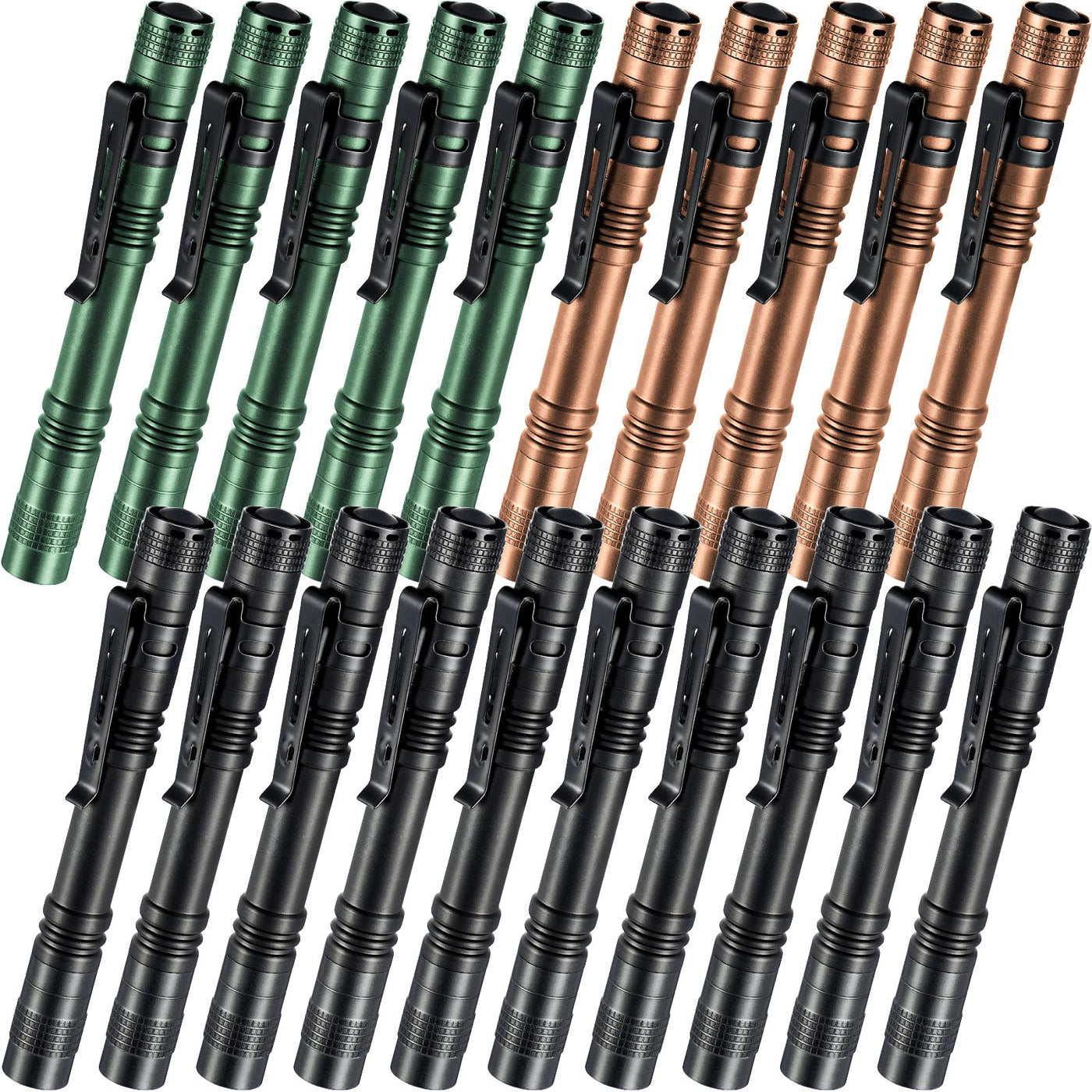 Features: This Portable Flashlight Is Simple To Use And Rich Enough To Meet Your Various Needs No Matter Where And When, So You Can Keep One In Your Car, One At Home, And One At Workplace, Suitable For Reading, Working, Inspections And Emergencies. This Torch Pen Light Measures 13 Cm/ 5.12 Inches, Comfortable To Hold In Hand. Importantly, It Can Be Attached To Your Hats, Belts, Binders, Shirts, Pants Pockets, Etc. Specifications: Material: Aluminum Alloy Color: Black, Brown, Green Size: Approx. 13 Cm/ 5.12 Inches Package Includes: 20 X Small Pocket Led Flashlights Notes: Please Allow Slight Dimension Error Due To Manual Measurement. Please Allow Slight Color Differences Due To Different Monitors. The Aaa Battery Is Not Included.