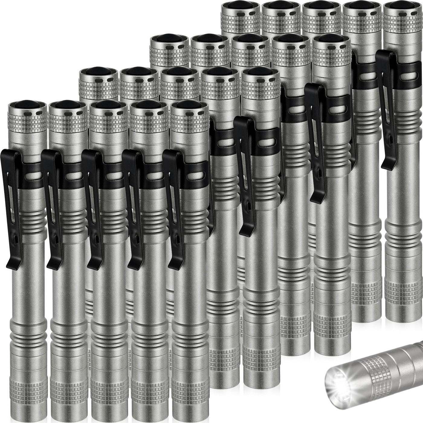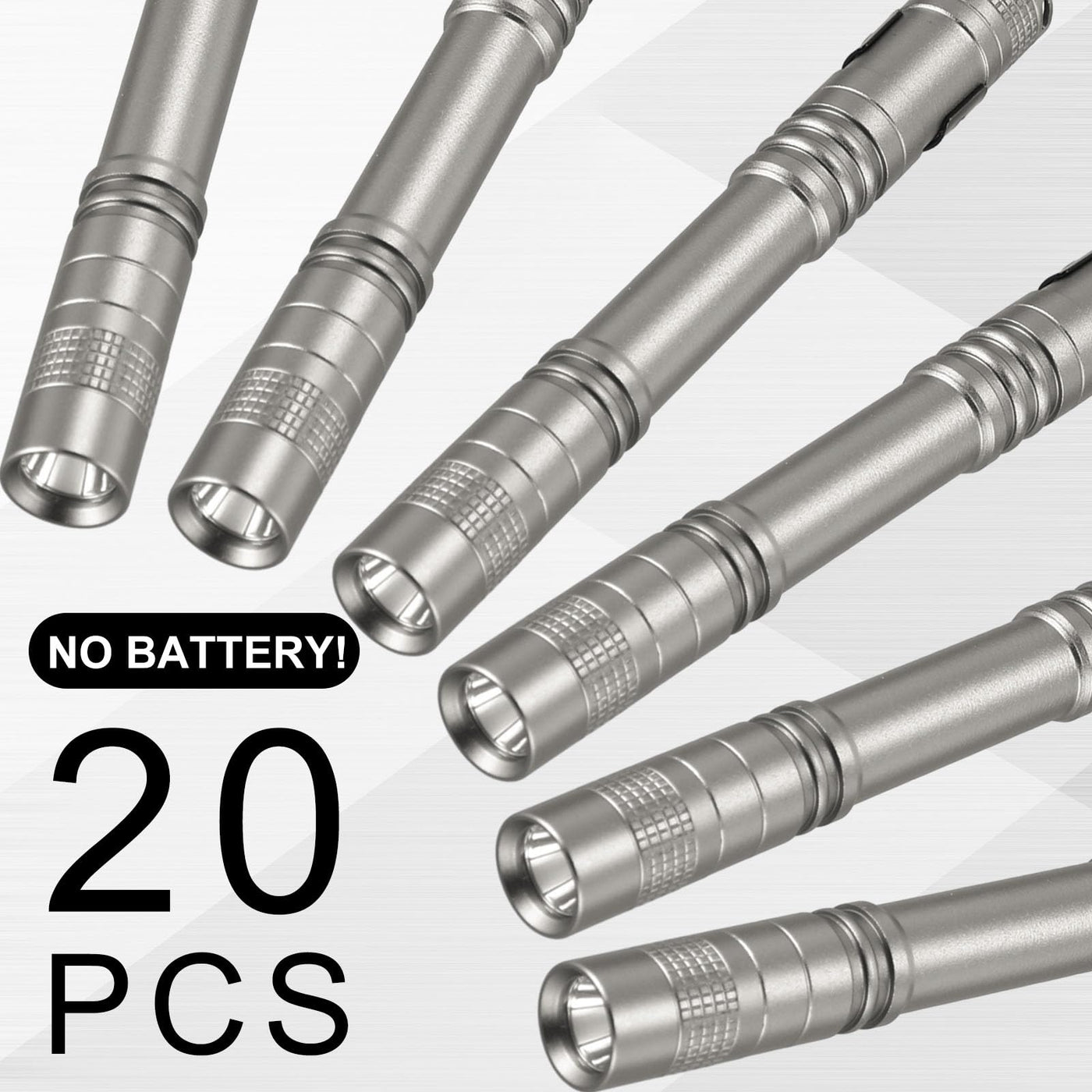 Hortsun Mini Pen Light Flashlight, 5.12 Inch, Gray, Aluminum, Pocket Size, Clip Included, 20 Pcs Gifts for Fathers Day