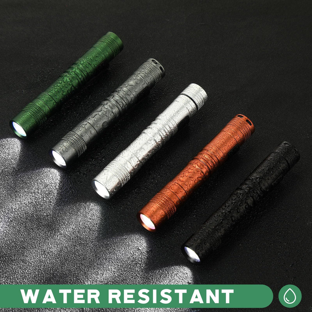 Q: Are the Hortsun Mini Pen Light Flashlights waterproof?A: Yes, the Hortsun Mini Pen Light Flashlights are designed with a waterproof feature, allowing them to function well in rainy and snowy conditions.