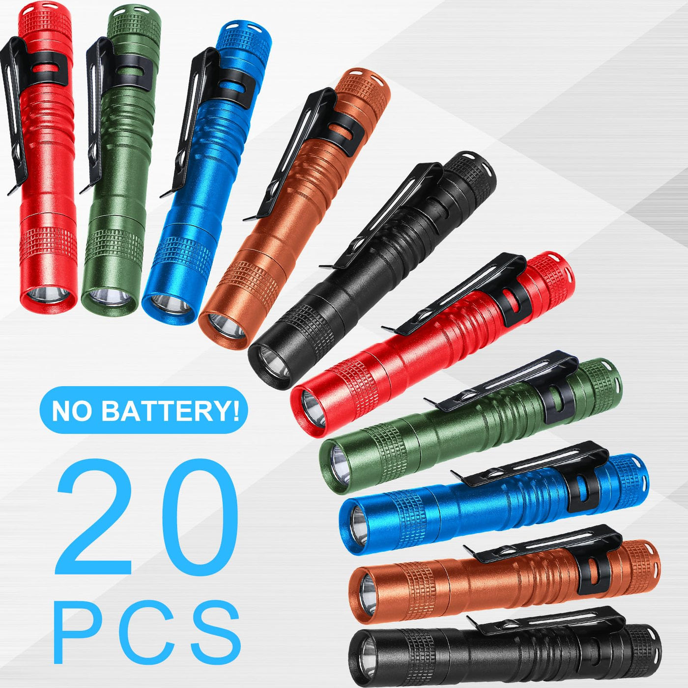 Hortsun Mini Pen Light Flashlights, 3.54 Inch, Aluminum, Set of 20, Colors: Black, Brown, Green, Red, Blue