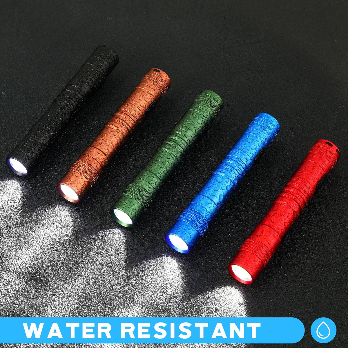 Q: Are these flashlights waterproof?A: Yes, the Hortsun Mini Pen Light Flashlights are designed with a waterproof feature, making them suitable for use in rainy or snowy conditions.