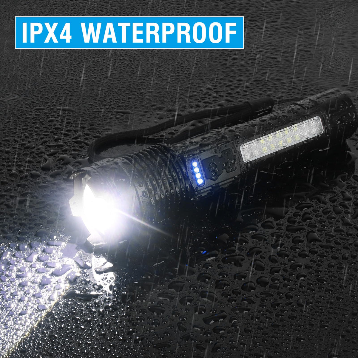 - **Waterproof and Safe**: Rated IPX4 for water resistance, this flashlight can withstand splashes and light rain, ensuring reliability in various weather conditions. Please note: avoid submerging it in water and keep away from children.