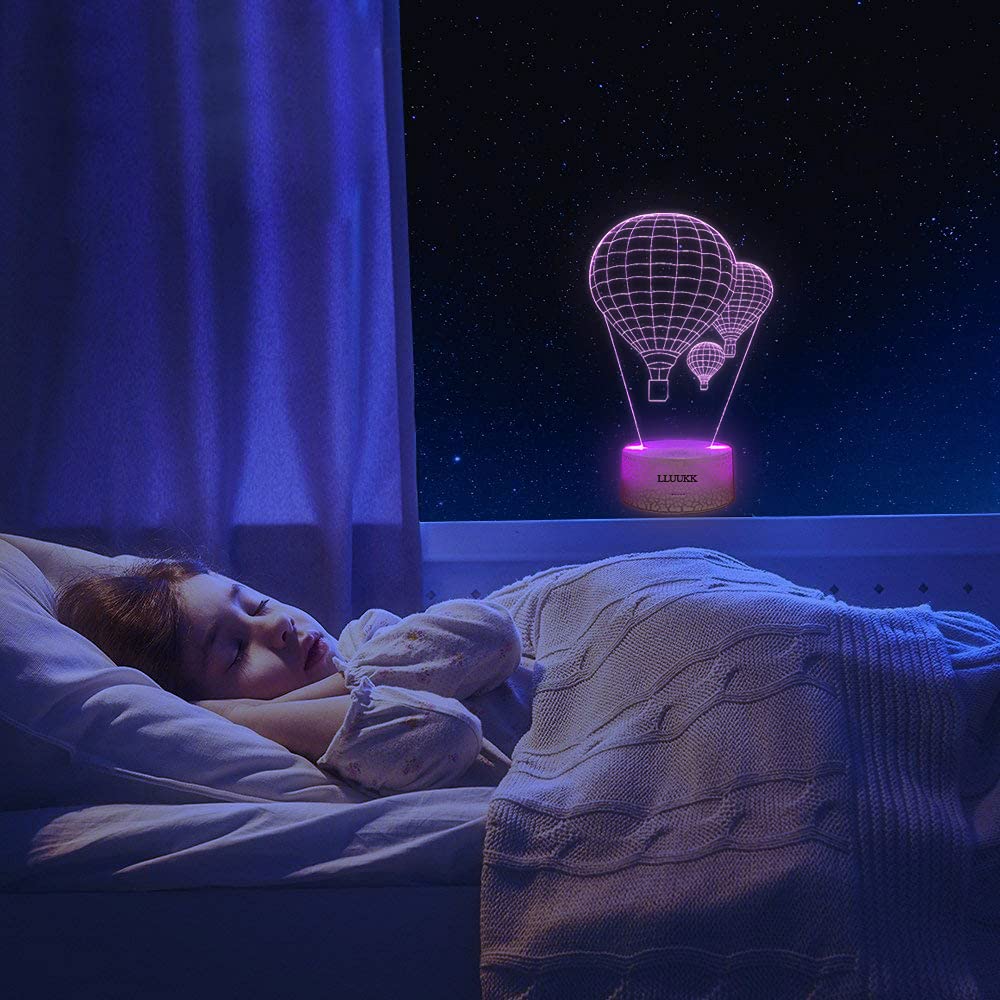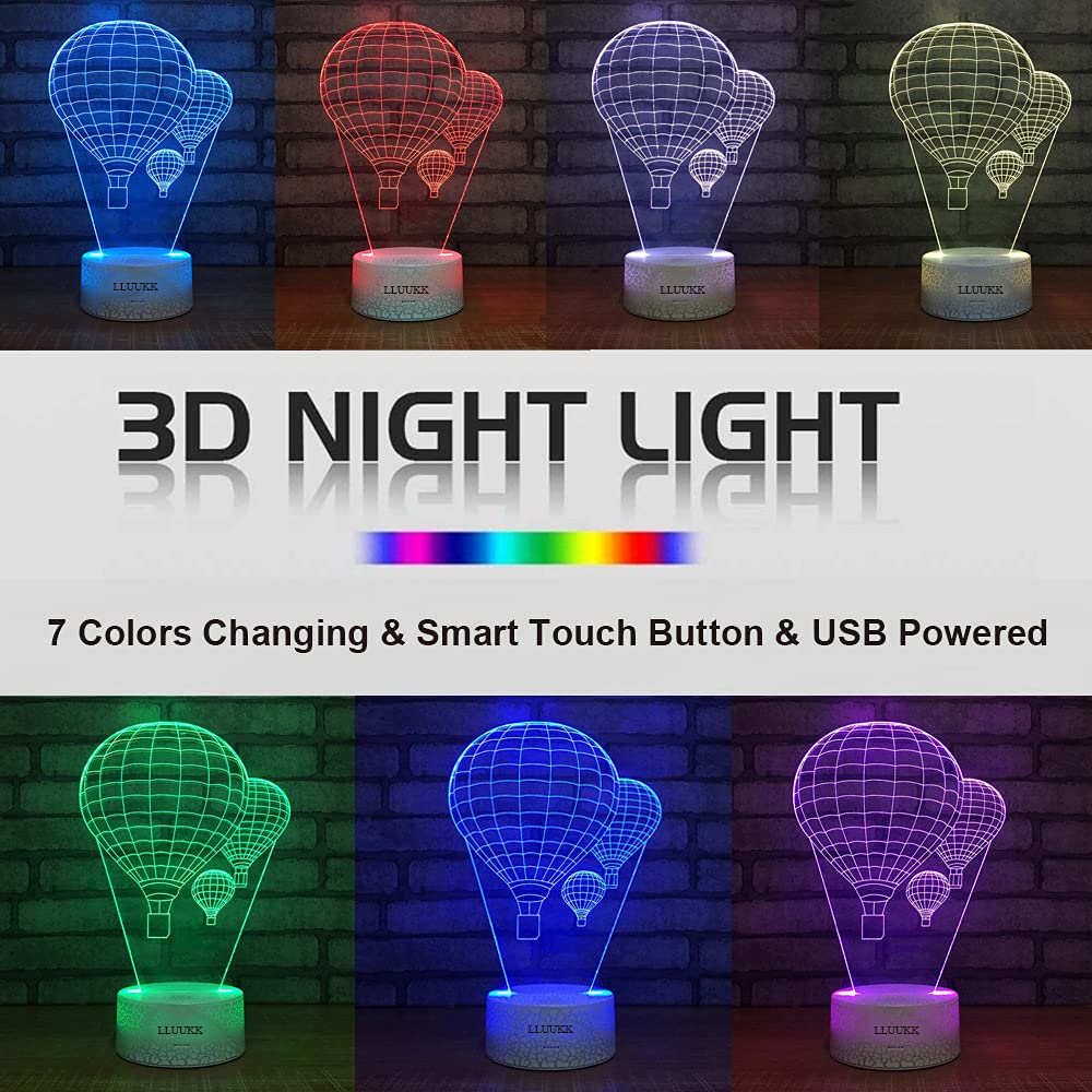Hot Air Balloon Night Light 3D Visual Led Desk Lamp Fire Balloon Toy Household Home Room Decor 7 Colors Change Touch Table Light