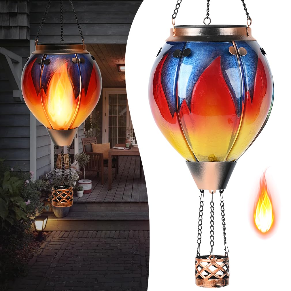 Hot Air Balloon Solar Lantern - Simulated Flickering & Dancing Flame Glass Lantern Outdoor Hanging Yard Light Waterproof Ip65 For Garden Patio Lawn Porch Decor Gift