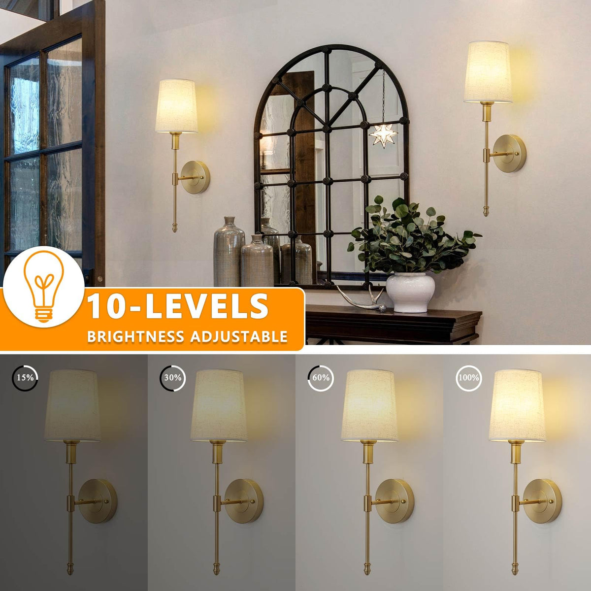 Hotran Battery Operated Wall Sconce Set Of Two,Gold Wireless Modern With Remote Control Rechargeable Dimmable Wall Lighting Indo