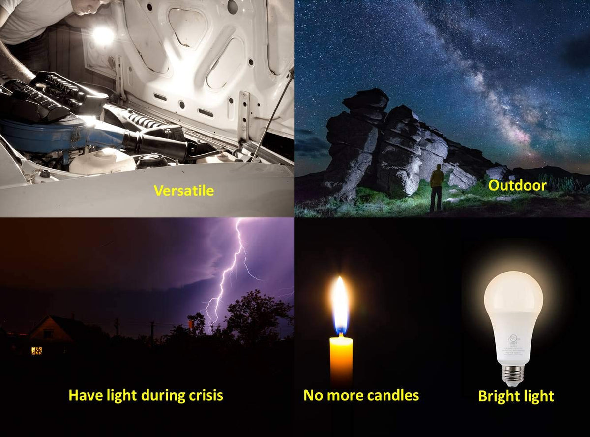 - **Reliable Backup Power**: Designed to stay illuminated for more than 3-4 hours during power outages, these bulbs automatically switch to battery mode when the power goes out. Simply keep the light switch on, and enjoy uninterrupted light when you need it most.