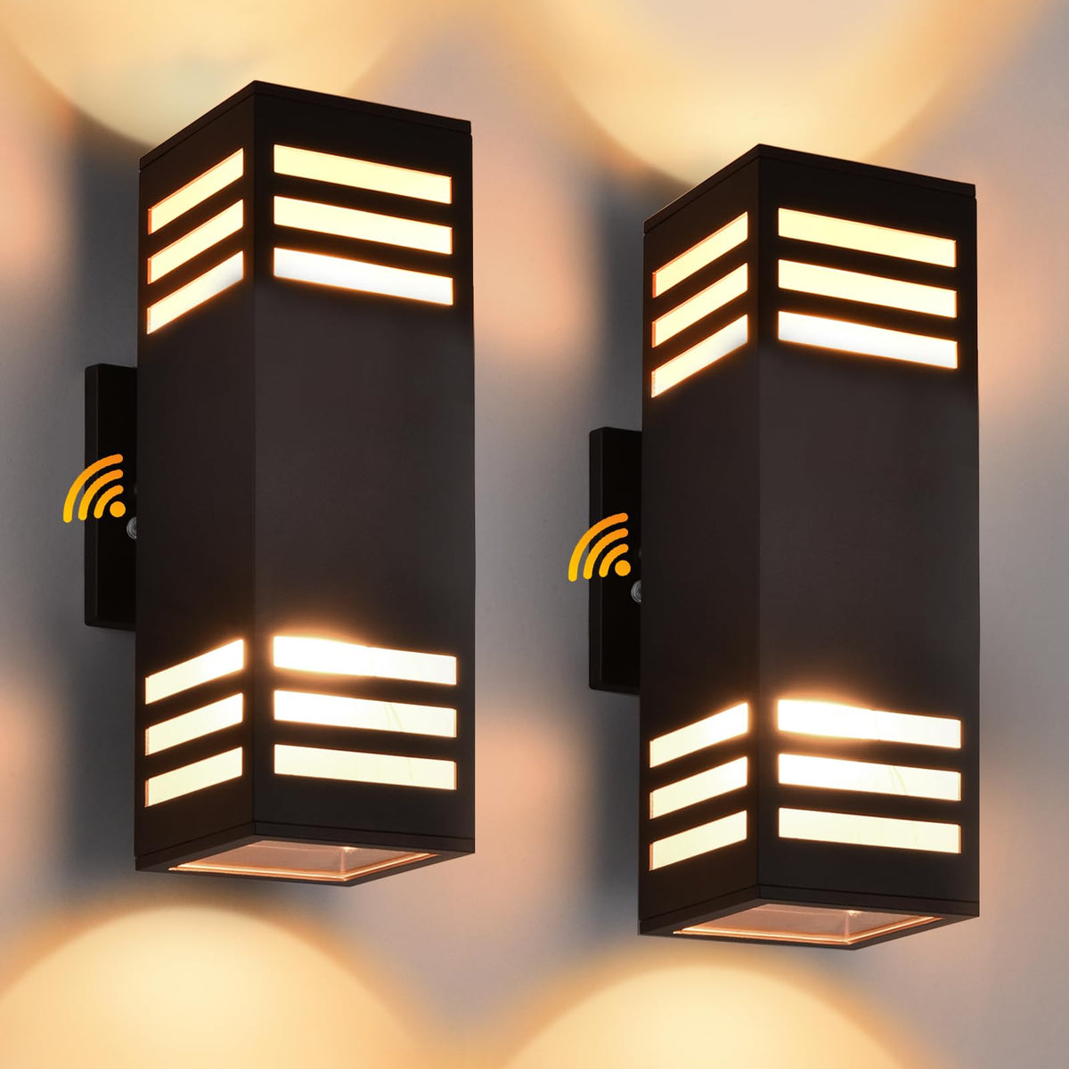 2 Pack Outdoor Lighting Fixture Dusk to Dawn, Up Down Outdoor Wall Lights with 4 E26 Socket Bulbs, Aluminum Waterproof Motion Sensor Exterior Rectangle Wall Sconce for Porch, Bronze