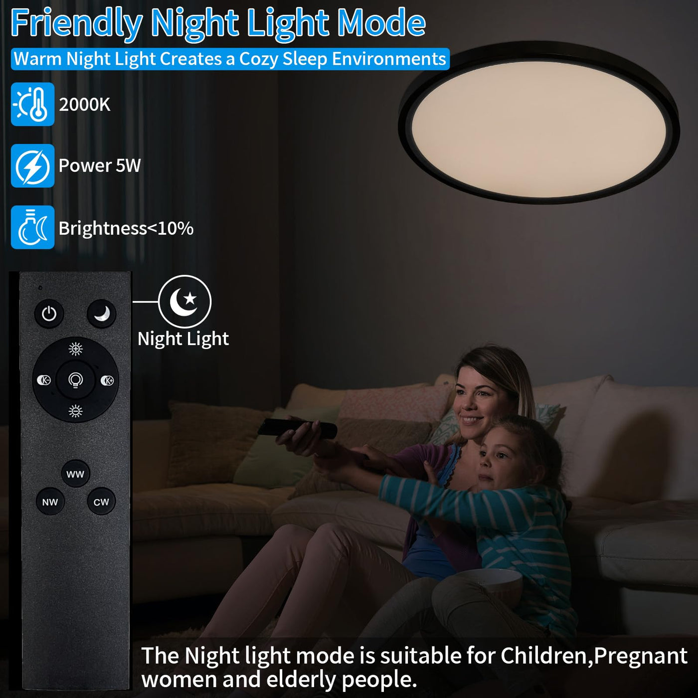 This ceiling light is crafted from durable plastic with a sleek black finish, making it a versatile addition to your home decor. The 15-inch size fits seamlessly into spaces like bedrooms, kitchens, dining rooms, and small living areas. With its adjustable brightness and color temperature, the fixture caters to different lighting needs and preferences, ensuring you always have the right light for any occasion.