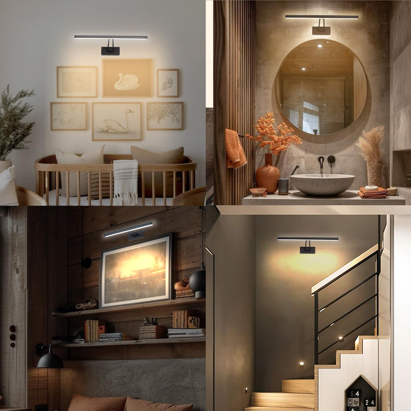 Q: Can the HOWMZON Picture Light be used in different settings?A: Absolutely! This versatile light can be used in various settings, such as a mirror light in bathrooms, night light in nurseries, and for illuminating paintings or artworks in galleries and libraries.