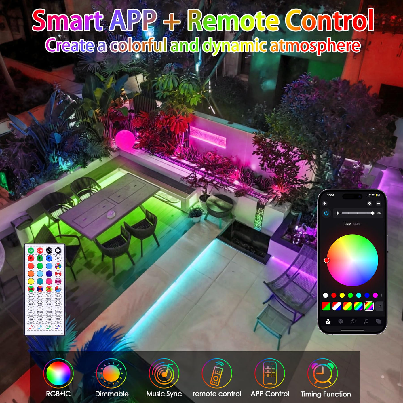 Smart APP and Remote Control: Control the lights via a smartphone app or remote with a range of up to 16 feet.