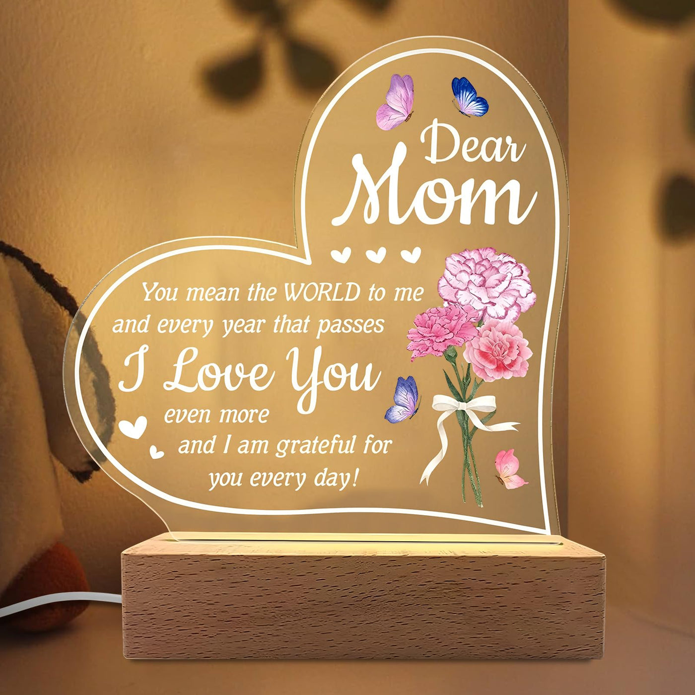 Hpydiy Carnation Heart Shape 3D Crystal Acrylic Light Base With Wood Stand Led Light For Kids Room Decor Gift For Mom On Birthday Or Holiday Home D?Cor Art Display