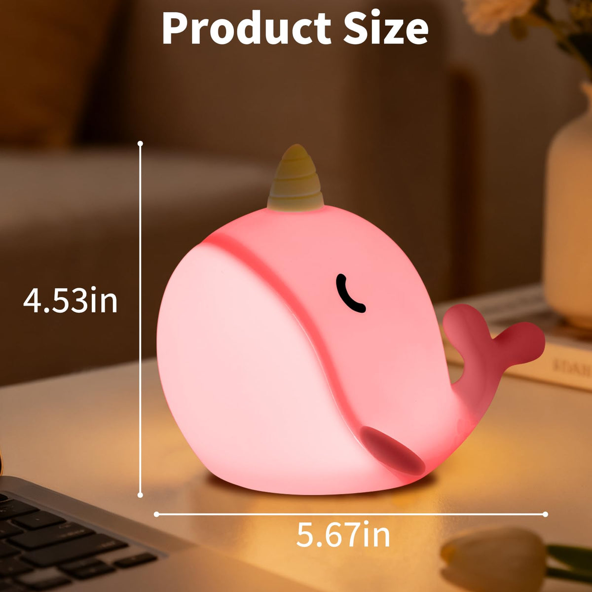 Discover The Magical Narwhal Night Light A Perfect Blend Of Enchanting Design And Practical Functionality. Crafted From Super Soft Child-Safe Silicone This Lamp Offers A Comforting Presence In Any Nursery Or Bedroom. With Simple Tap Control You Can Easily Choose From Three Adjustable Brightness Levels Of Warm White Light To Create The Ideal Ambiance. Featuring A Convenient 30-Minute Auto-Off Timer To Promote Healthy Sleep Habits And A Constant-On Mode For All-Night Comfort Its An Essential For Modern Parenting. Usb-Powered For Easy Use Anywhere Its Not Just A Night Light-ItS A Charming Companion And A Thoughtful Gift For Any Occasion. Key Features: Operation: Simple Tap Sensor Control. Light Modes: 3 Adjustable Warm White Brightness Levels. Timer Function: 30-Minute Auto-Off Timer. Alternative Mode: Constant-On Mode For All-Night Use. Material: enhanced Soft-Touch Silicone. Power: Usb Powered For Versatility. Design: Enchanting Narwhal Shape. Ideal For: Nurseries Kids Rooms Bedtime Routines And As A Gift.